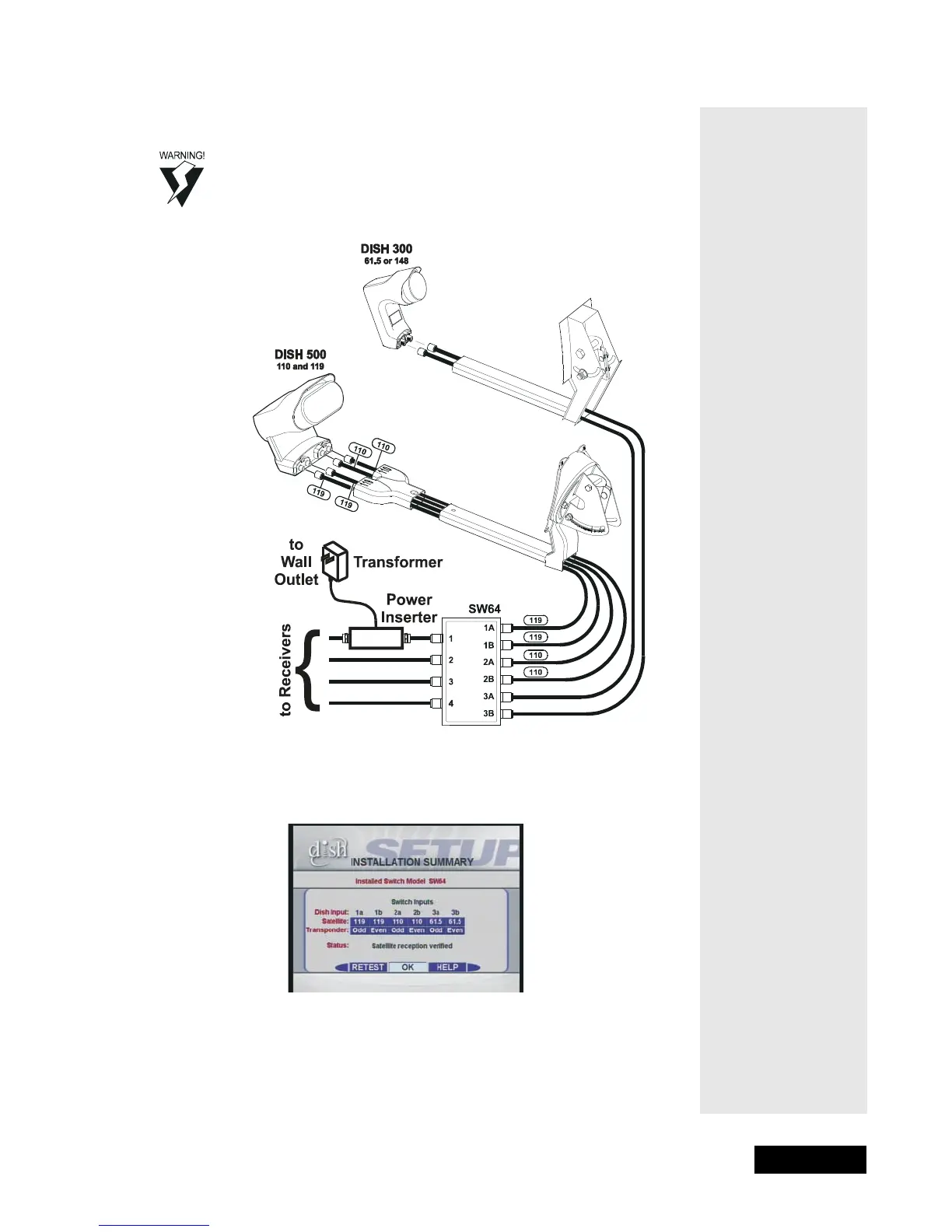 TWO DISHES,ONE QUAD LNBF, ONE DUAL-OUTPUT LNBF, ONE SW64