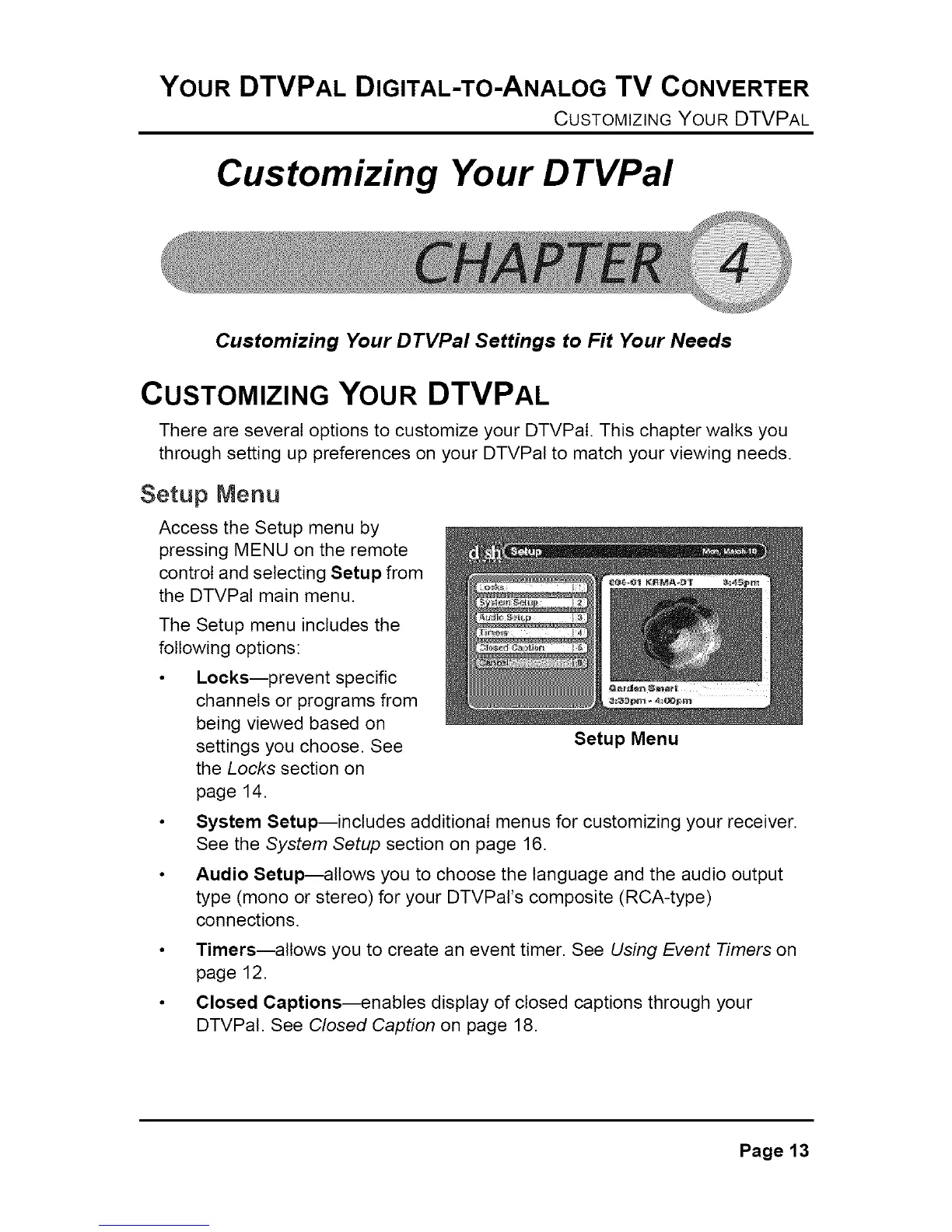 There are several options to customize your DTVPal. This chapter walks you