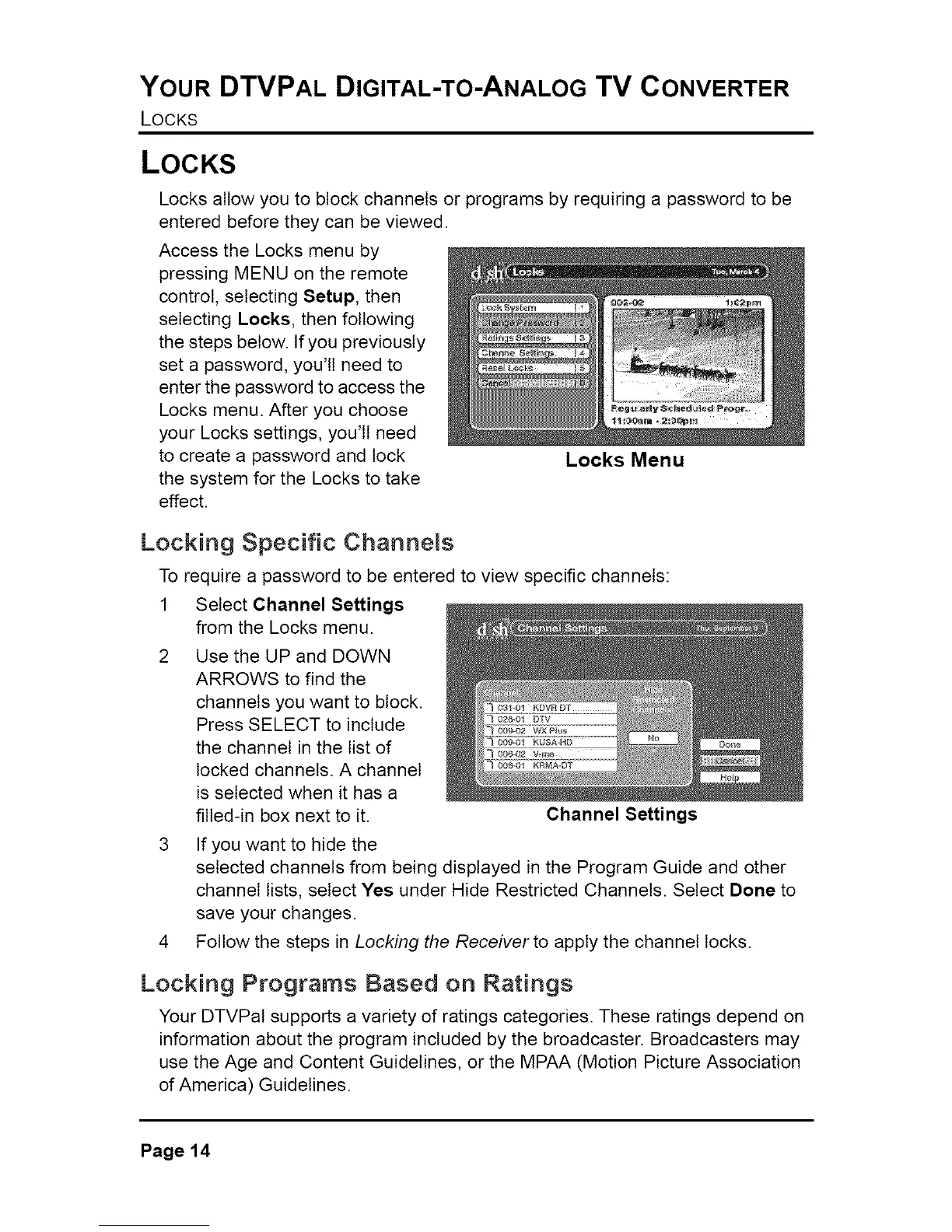 Locks allow you to block channels or programs by requiring a password to be