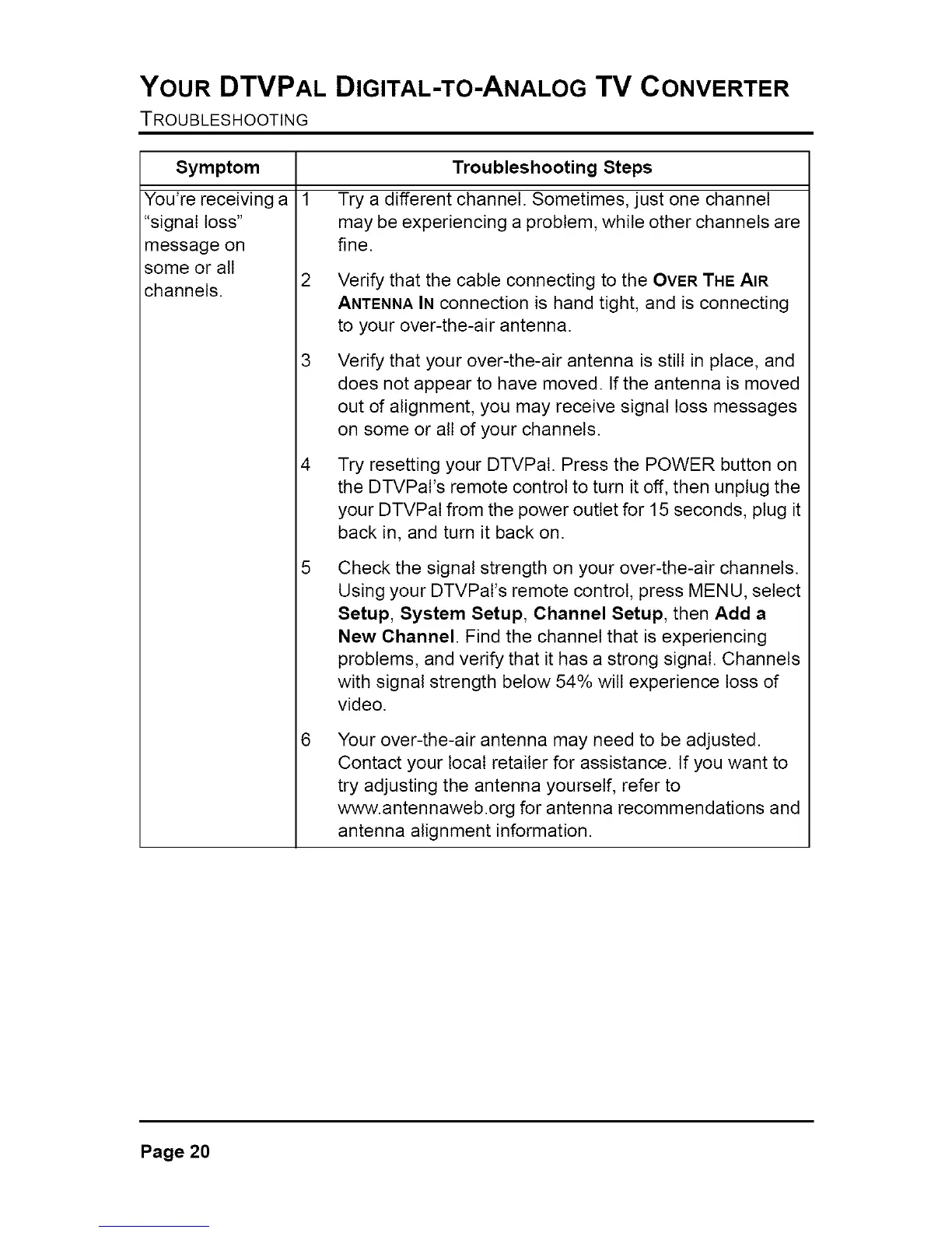 Verify that your over-the-air antenna is still in place, and