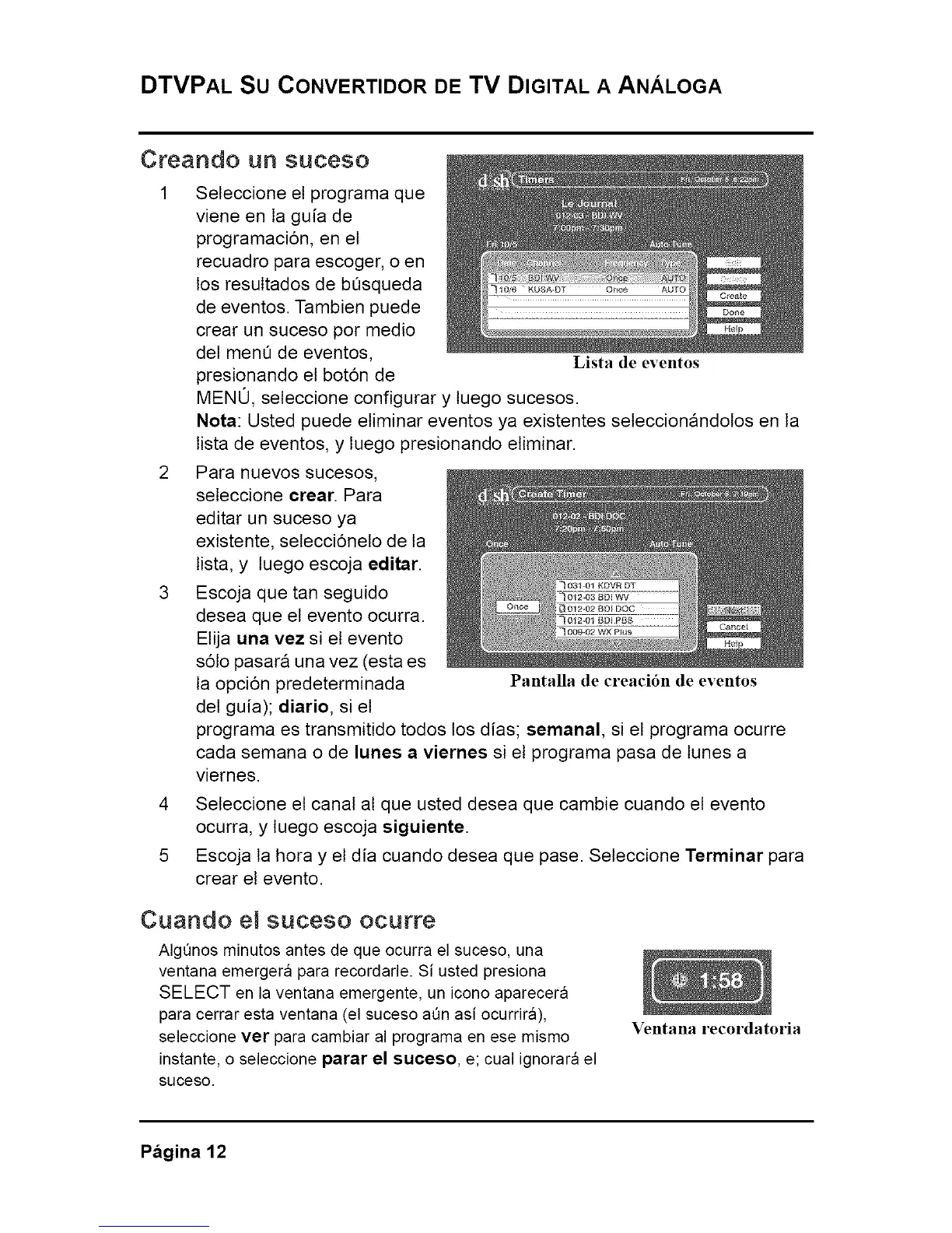 4 Seleccione el canal al que usted desea que cambie cuando el evento