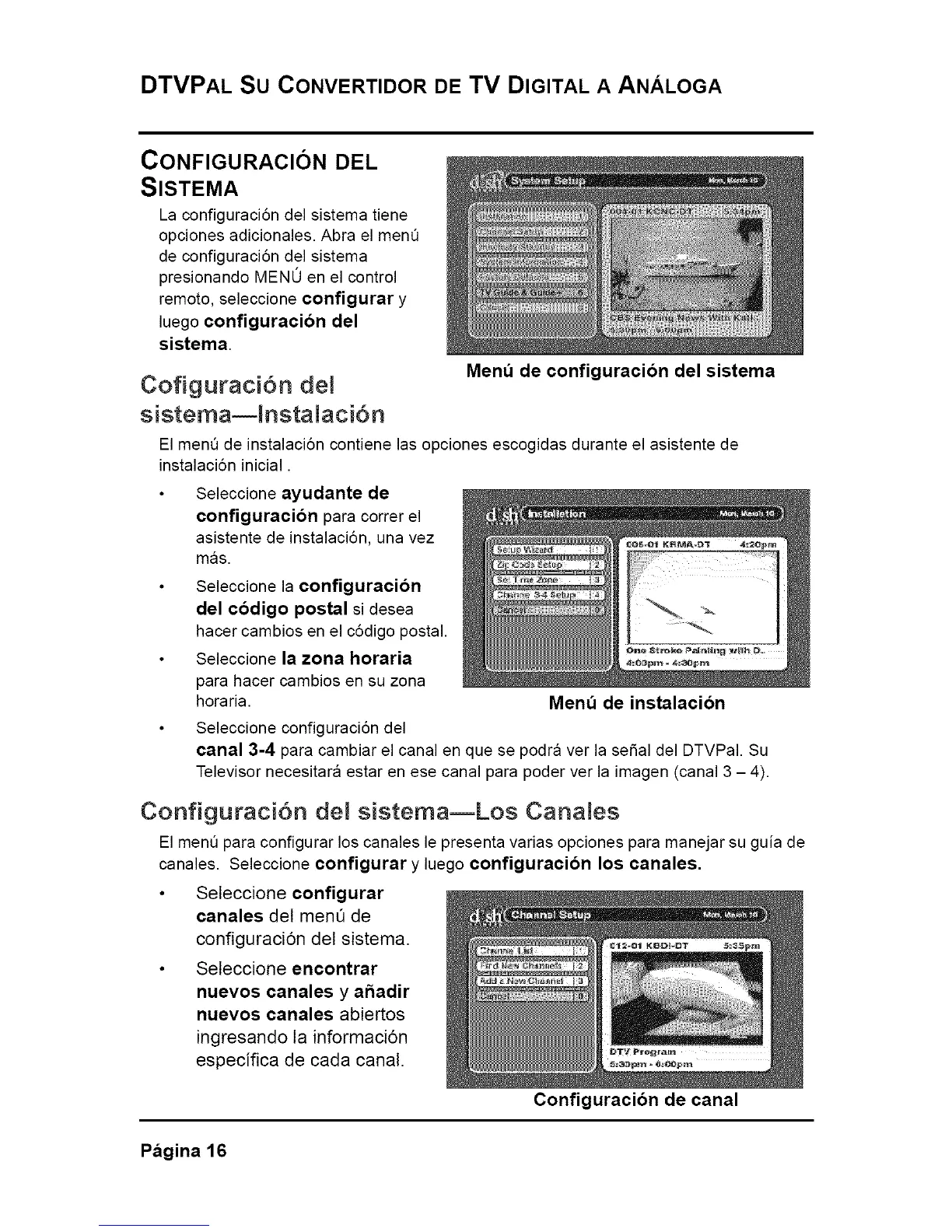 Configuraci6n dei sistemaELos Canales