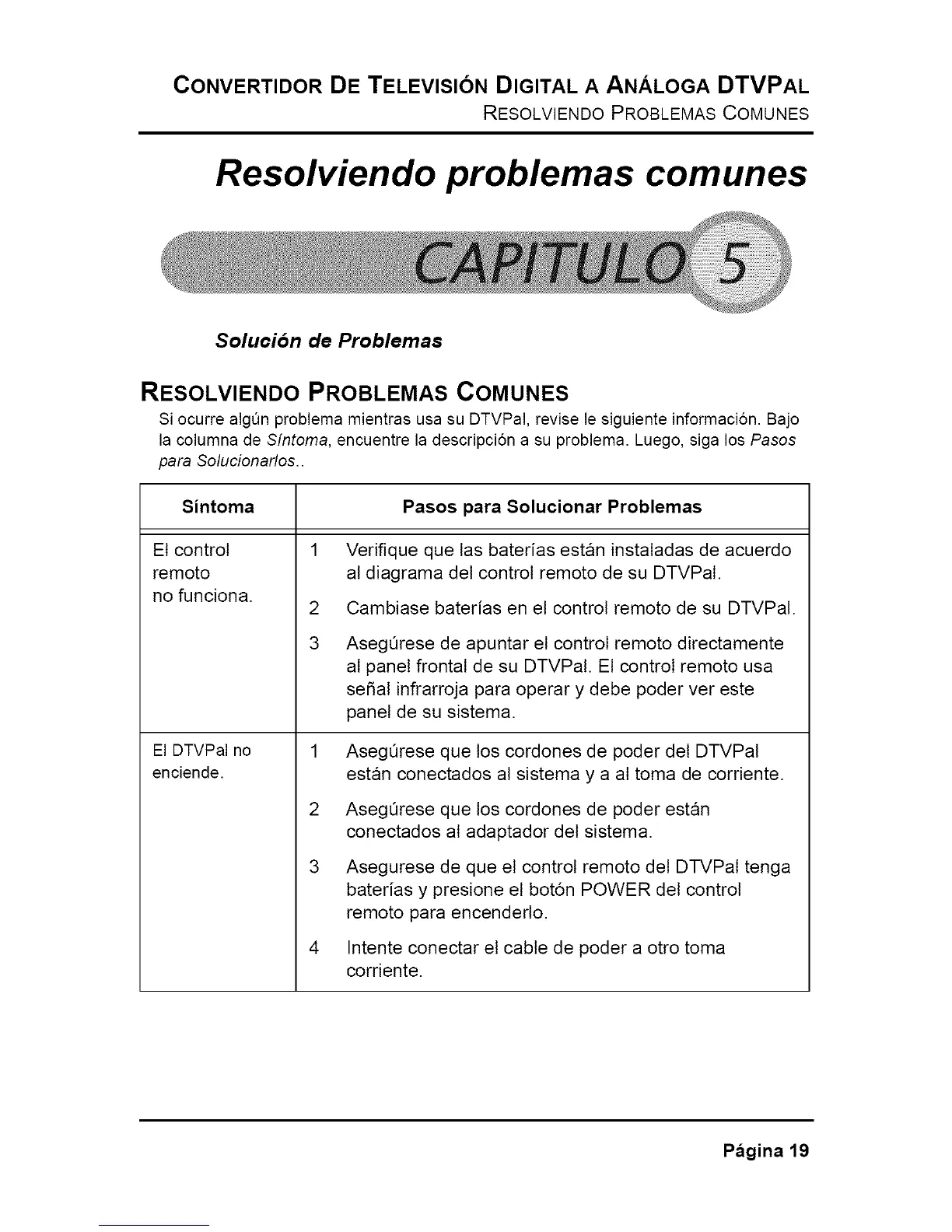 Si ocurre algQnproblema mientrasusa su DTVPal, revise le siguiente informaci6n. Bajo
