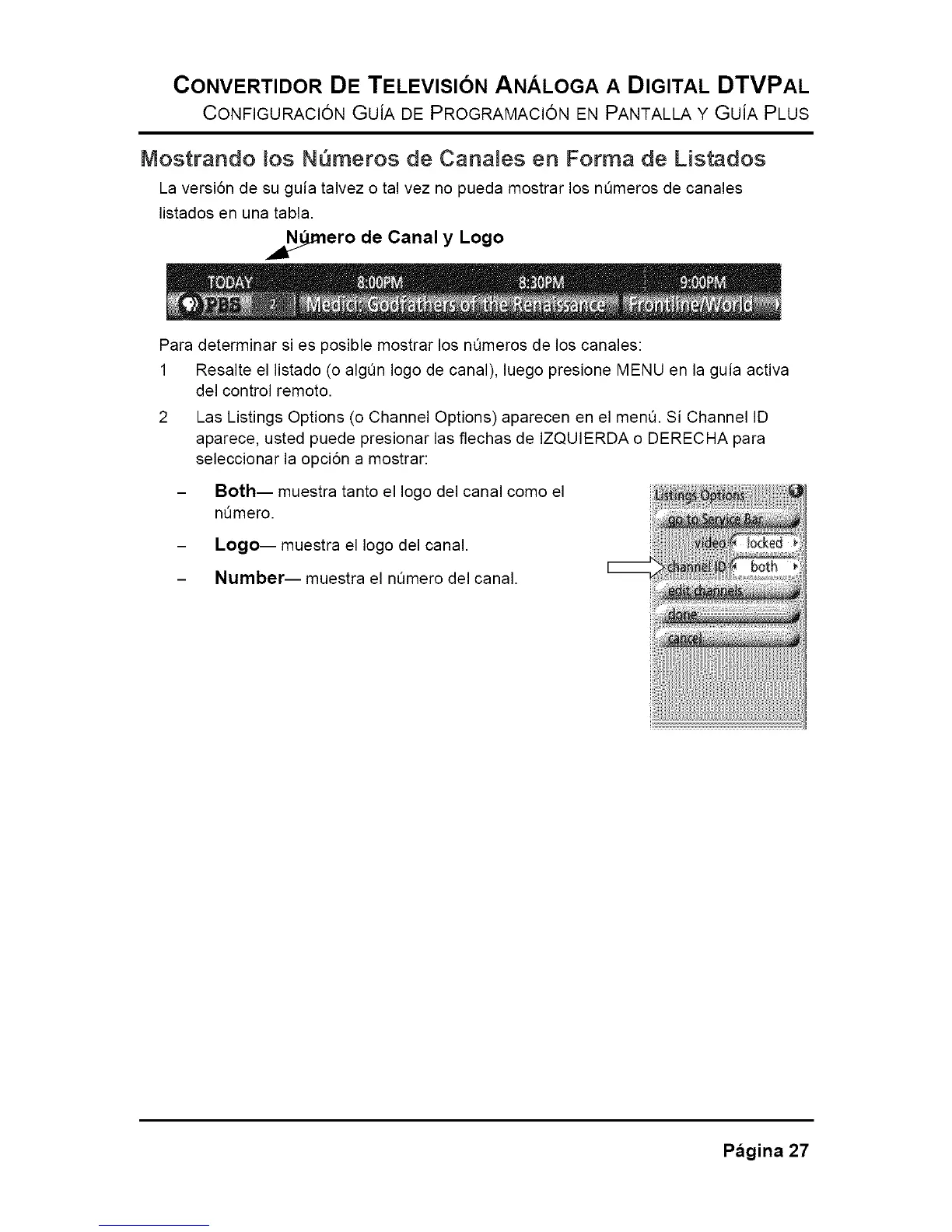 2 Las Listings Options (o Channel Options) aparecen en el men& Si Channel ID