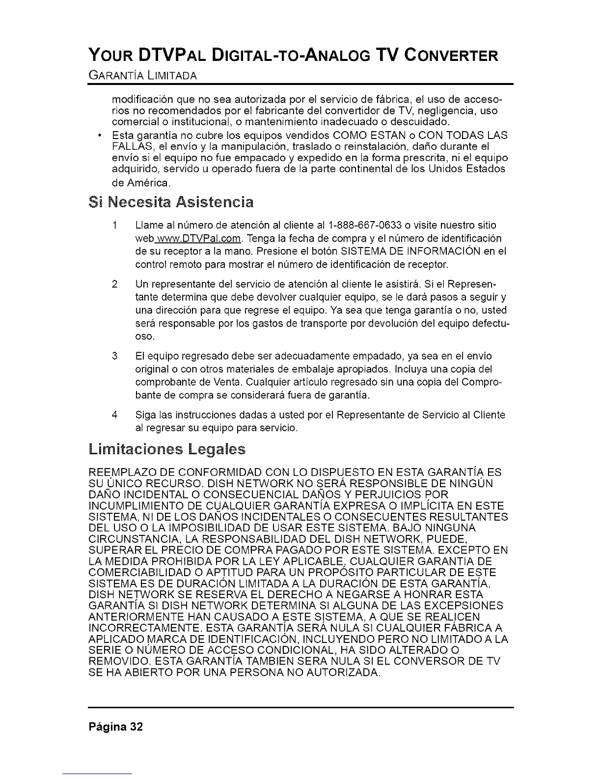web www.DTVPal.com. Tenga la fecha de compra y el nQmero de identificaci6n
