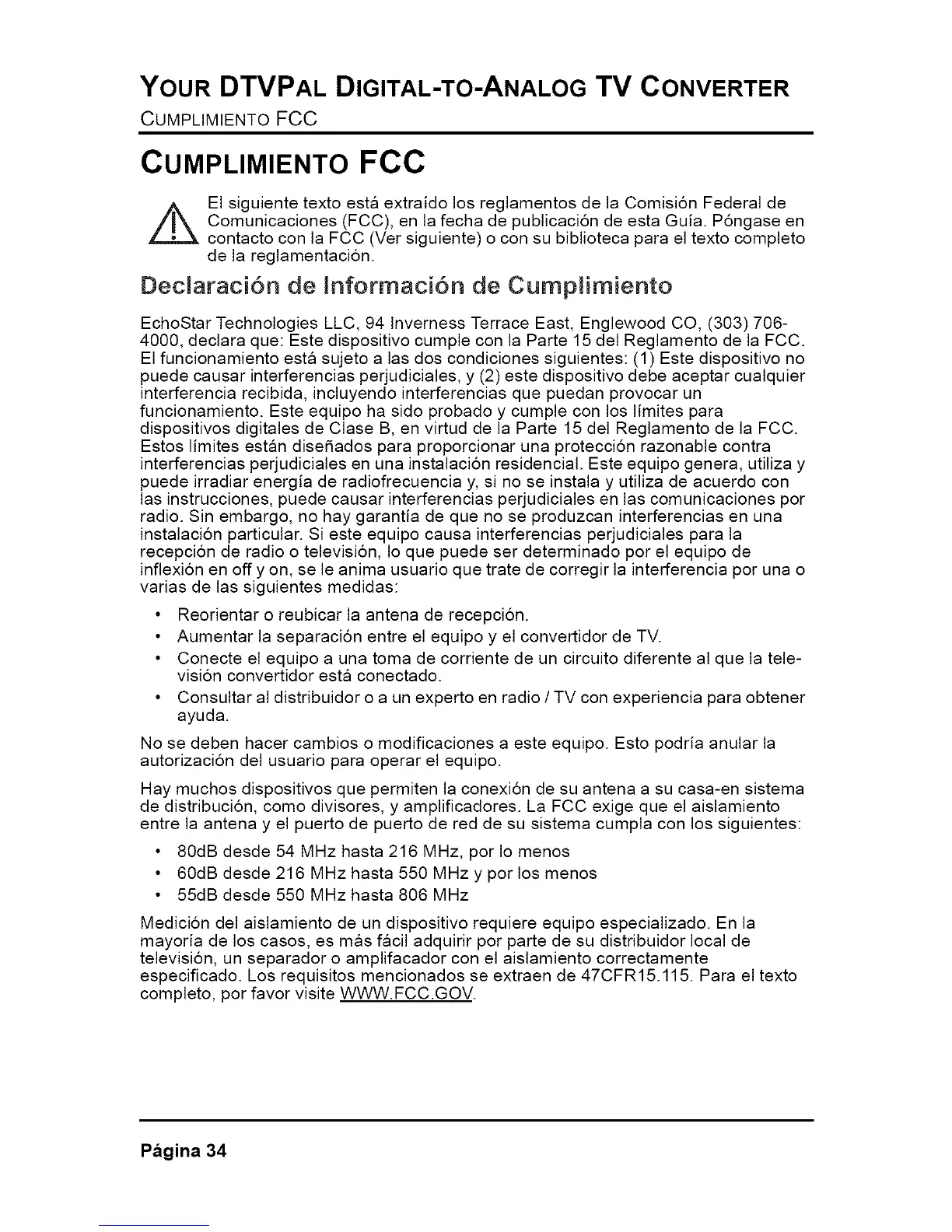 Comunicaciones (FCC), en la fecha de publicaci6n de esta Guia. P6ngase en