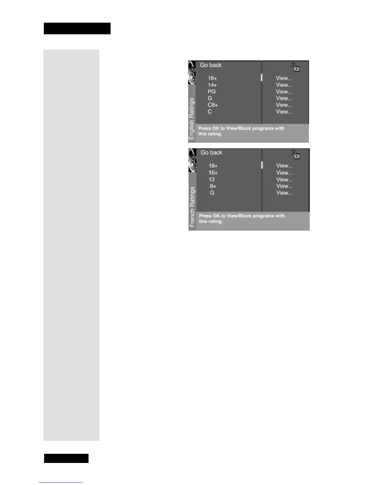 4. Press the DOWN ARROW button to scroll to the rating you want to