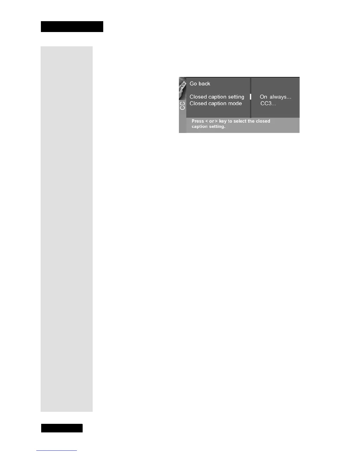 Closed Caption setting - Use the LEFT and RIGHT ARROWS to