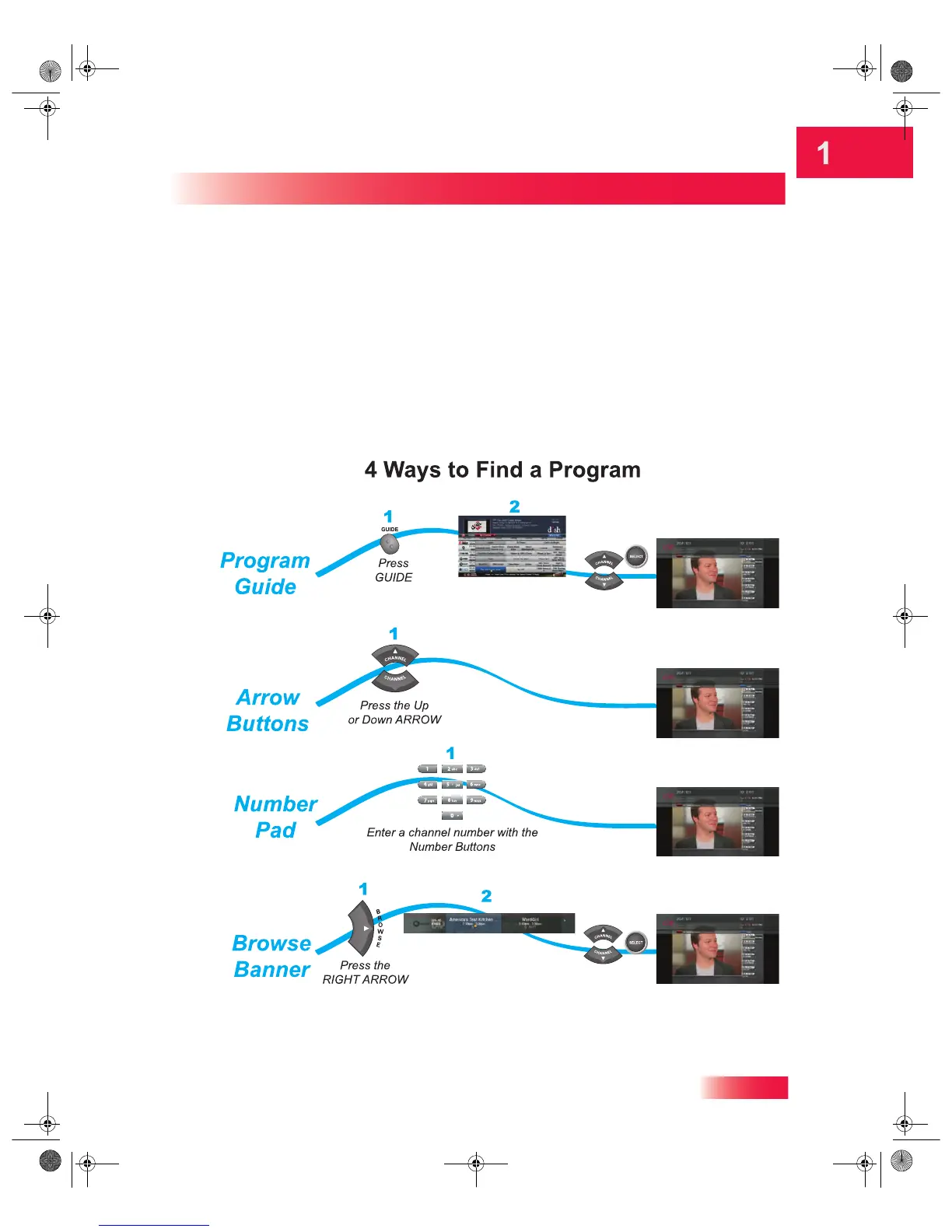 familiar with the remote control and be able to find a program to watch, pause live TV, and