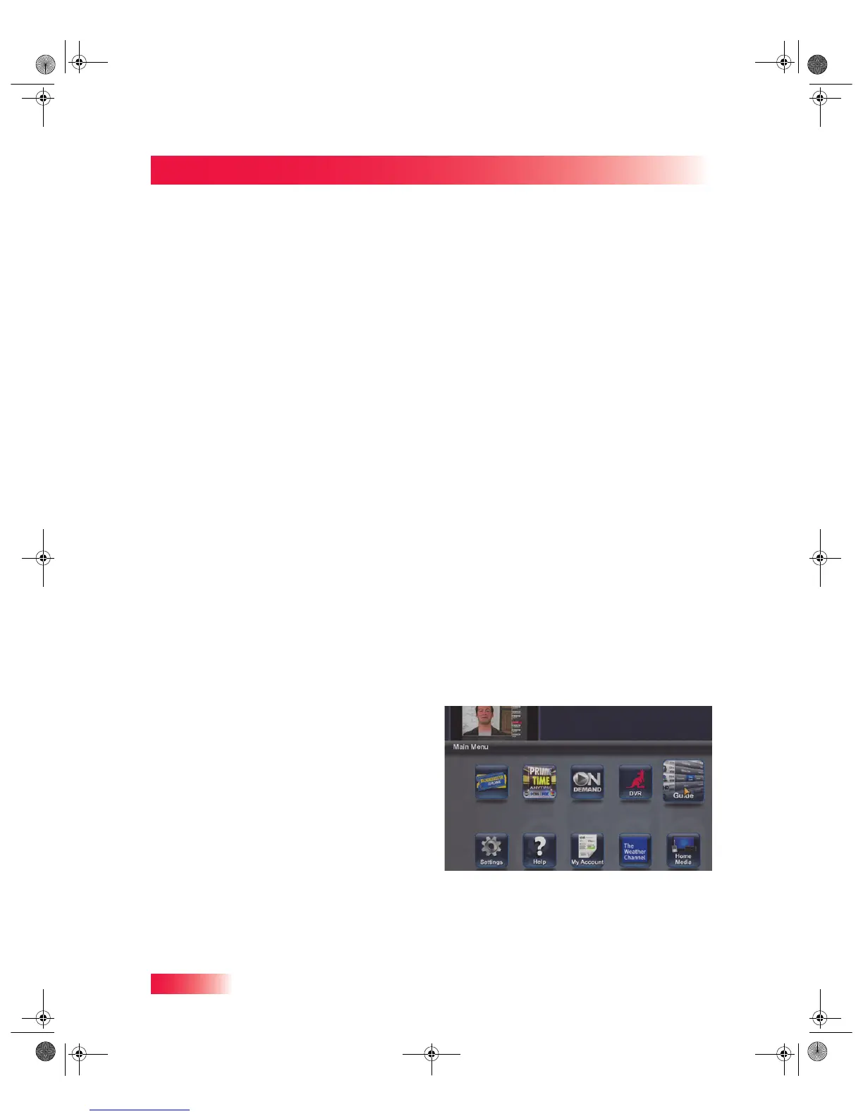 • Press the MENU button on the receiver front panel or remote control to open the Main