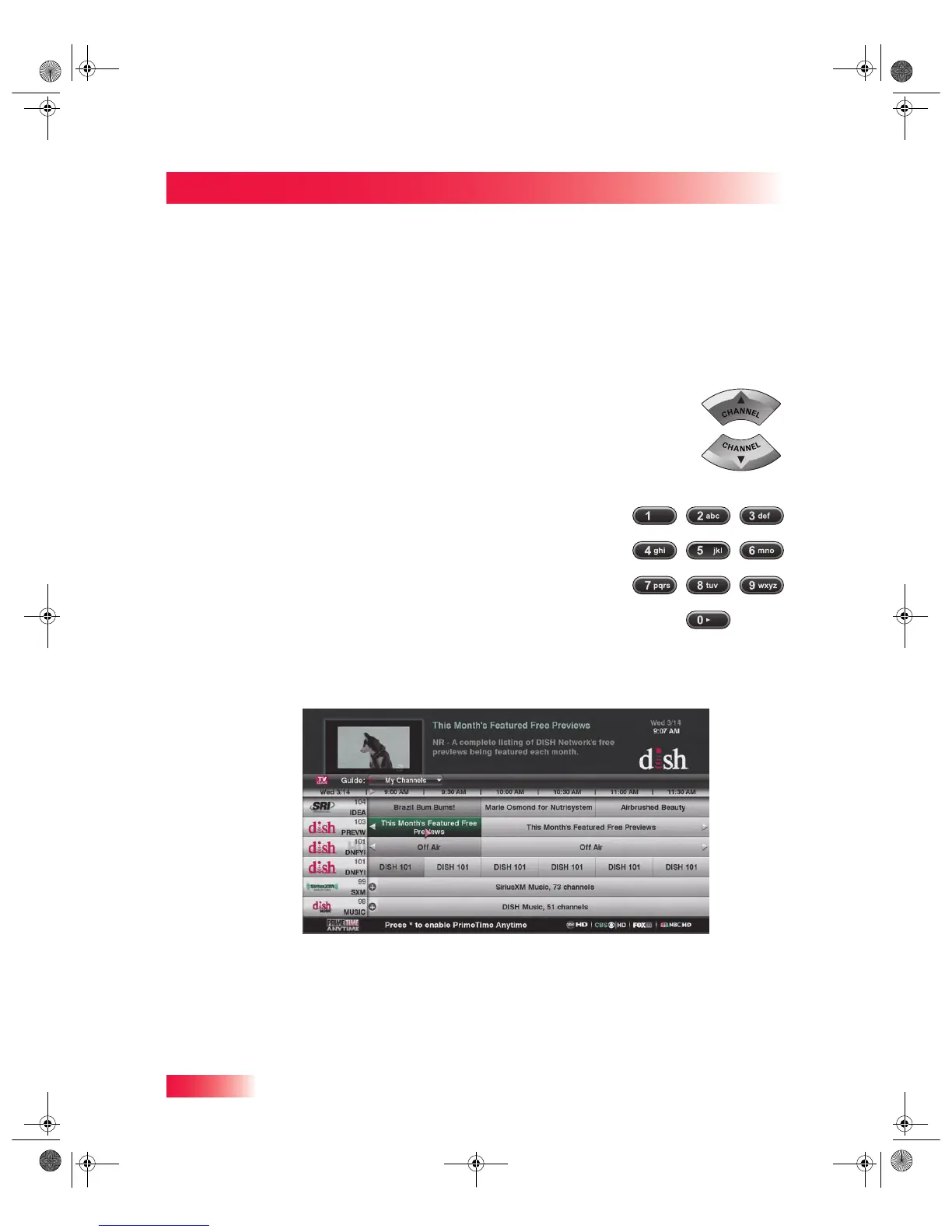 channels, and to set up timed recordings. To access the program guide, press GUIDE.