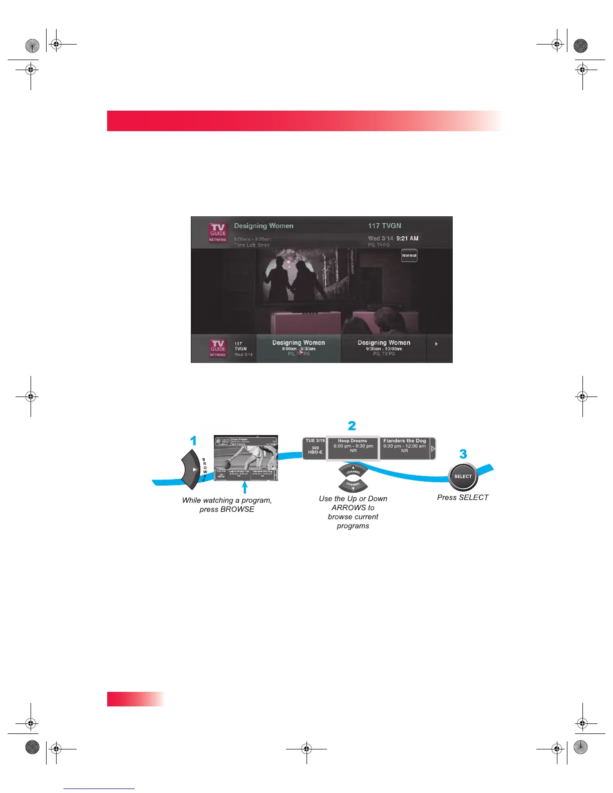 Use the Browse Banner to see what other programs are on now or coming on soon, while