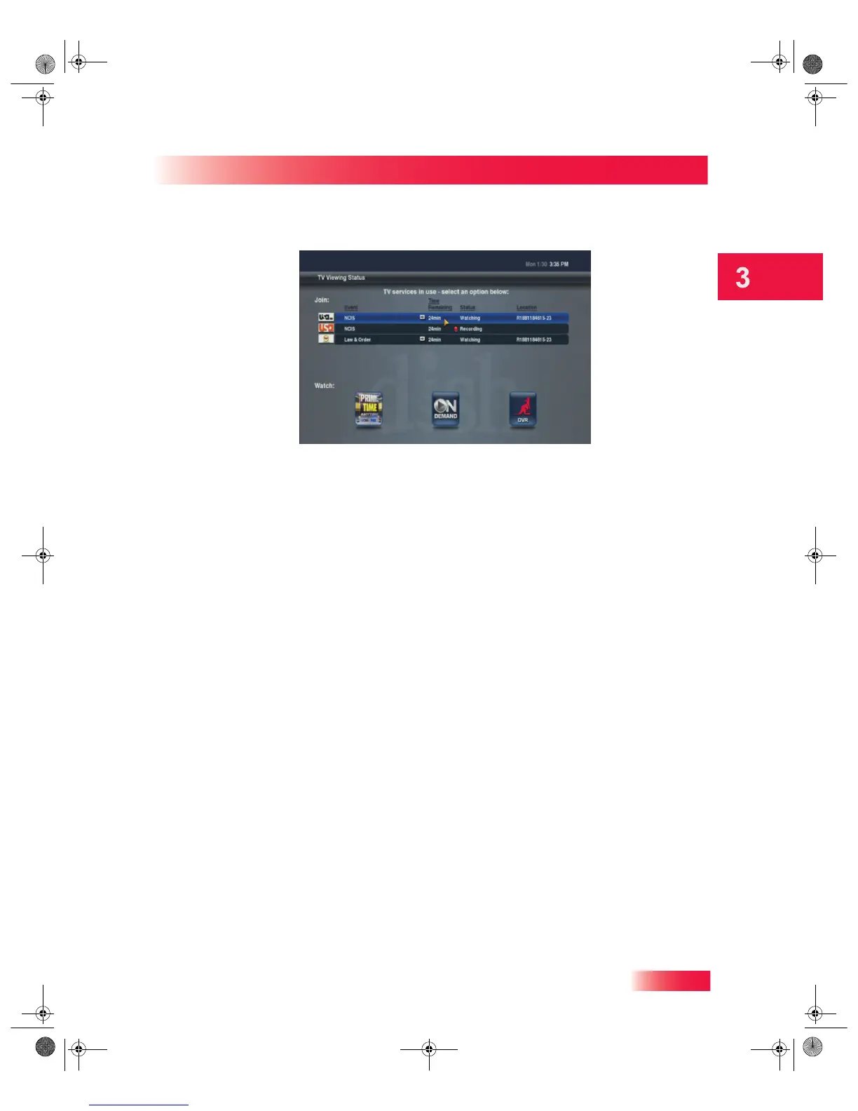 3 Press the red button on this remote control to display the TV Viewing Status screen.