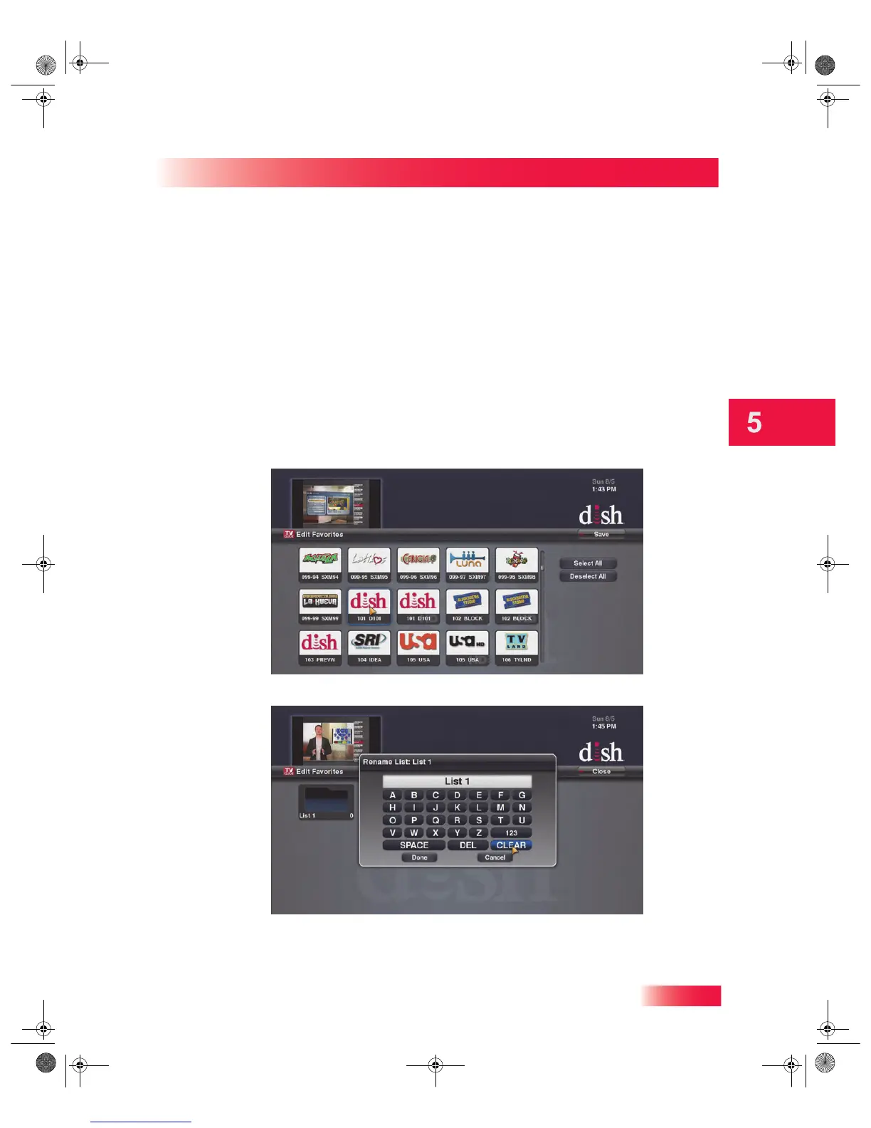 down menu of Favorites Lists on the Program Guide screen. (You can also press MENU,