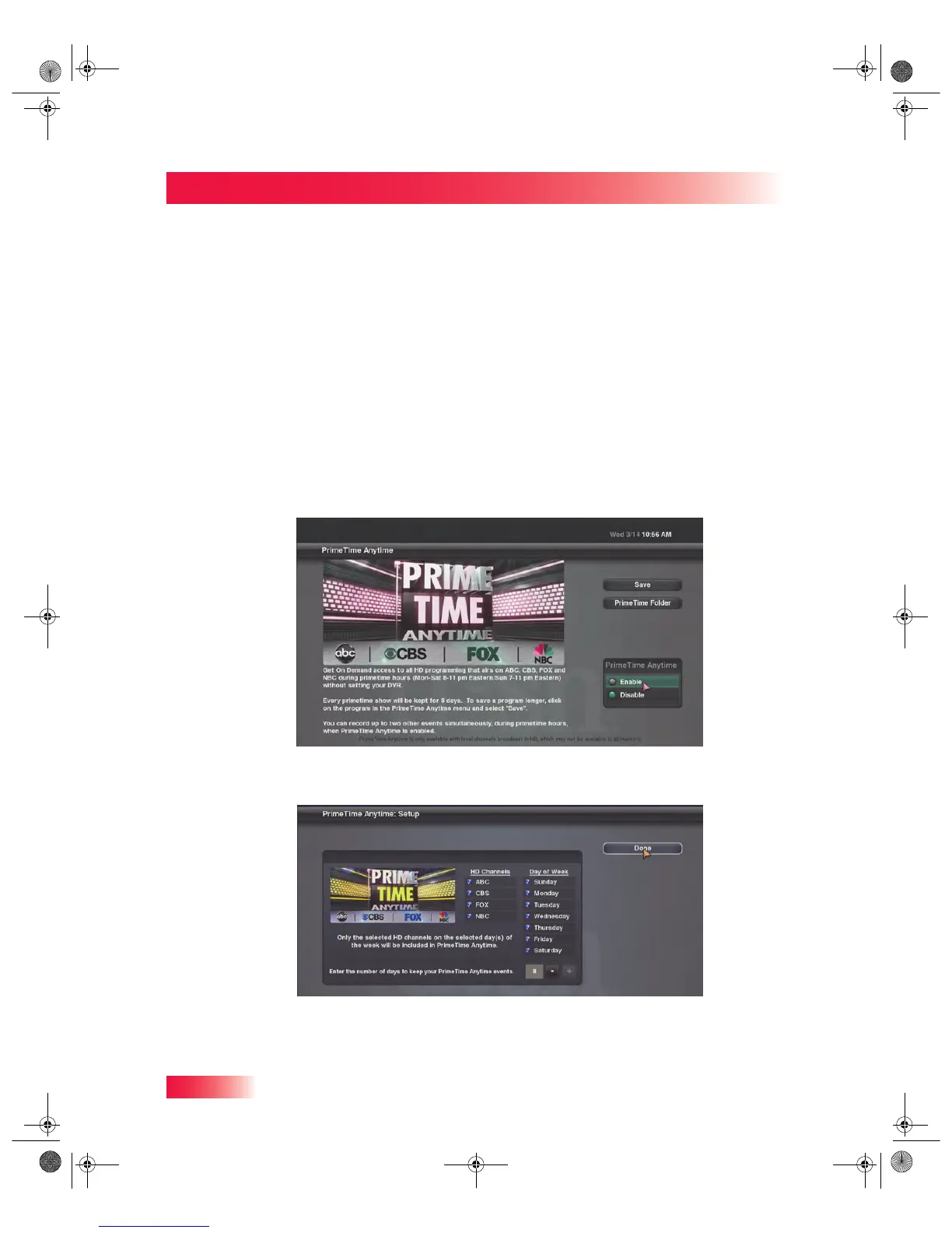 3 Highlight and select Done. Then on the PrimeTime Anytime™ screen, select Save.