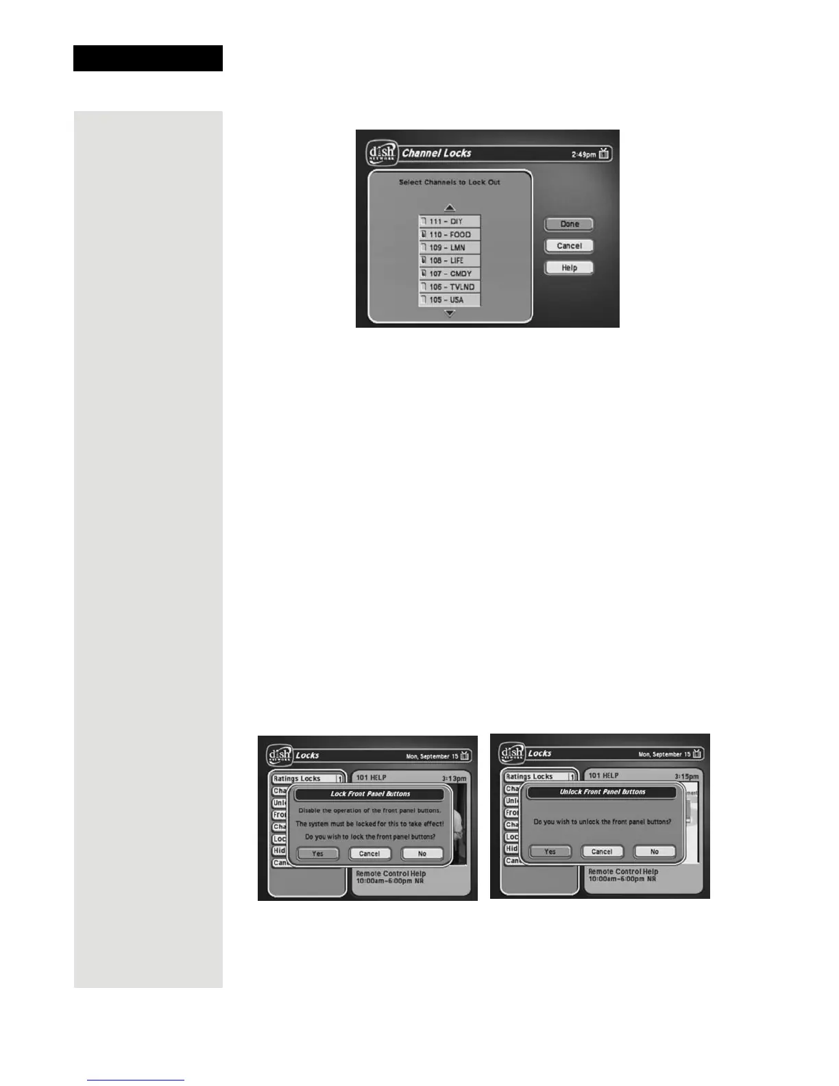 6. Press the SELECT button to lock or unlock the highlighted channel. If the