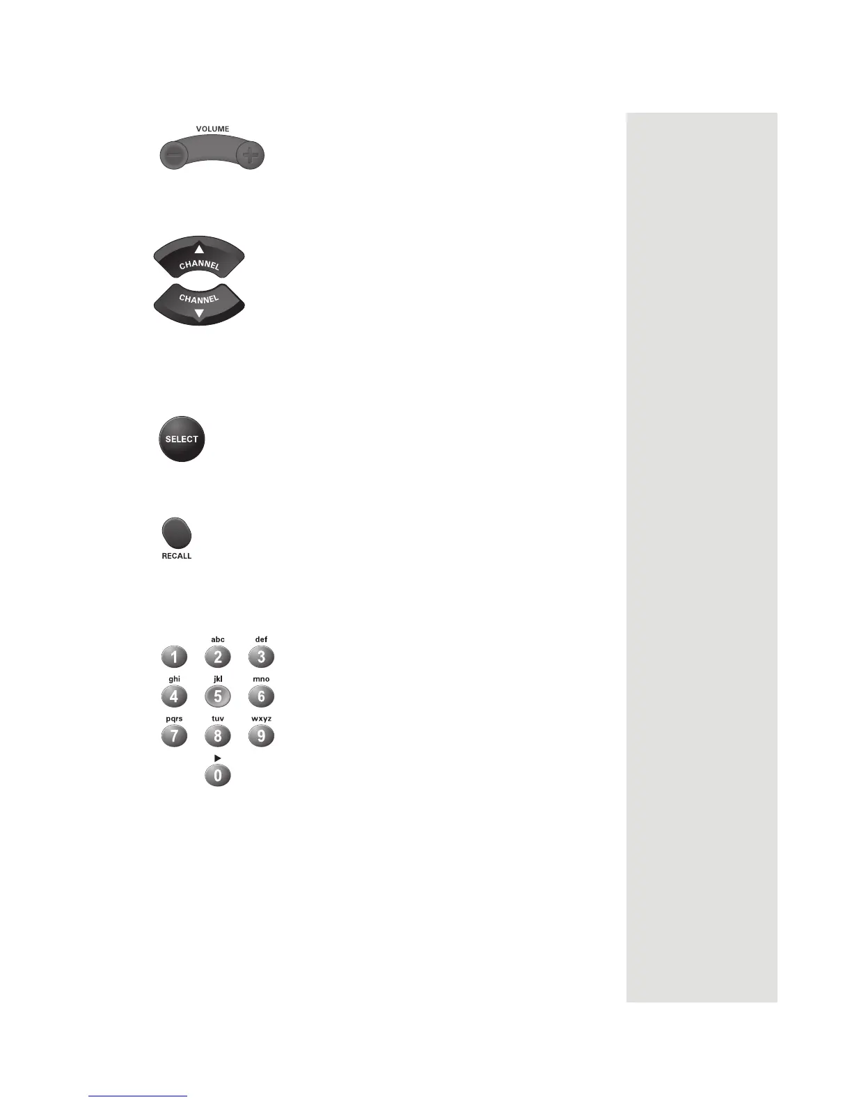 Press this button to raise (+) or lower (-) the TV sound volume.