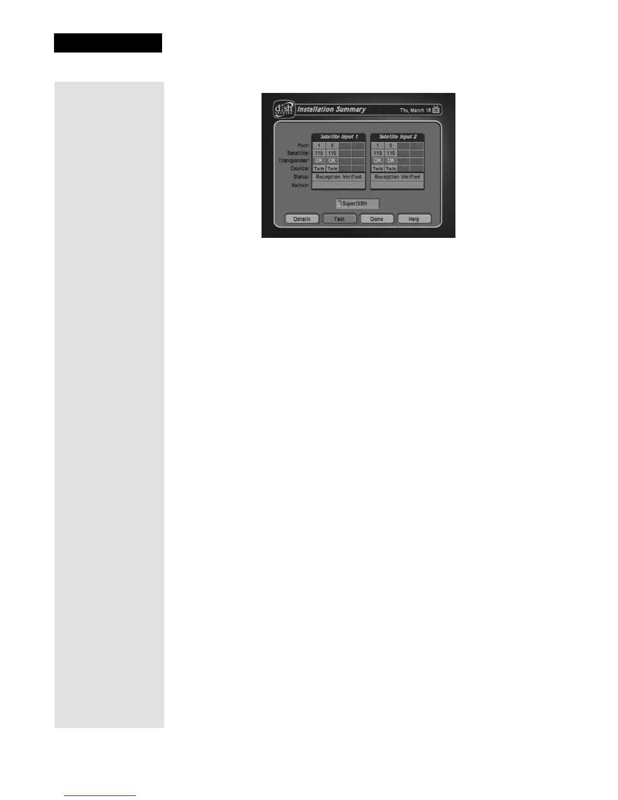 OK to go to the Point Dish/Signal screen.