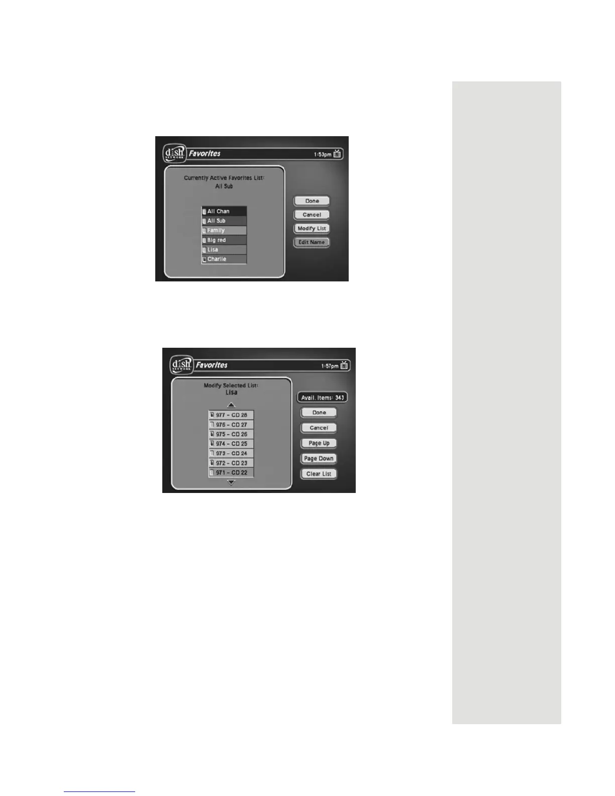 You can create, add channels to, and remove channels from a Favorites List.