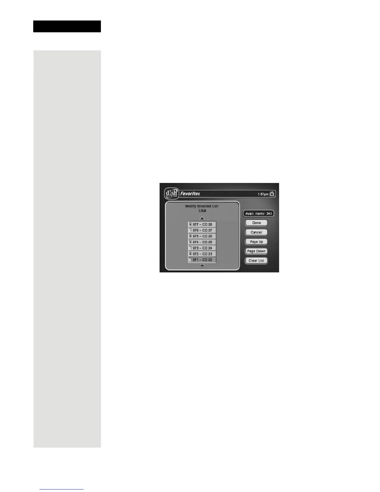 Favorites List, pressing the GUIDE button switches the