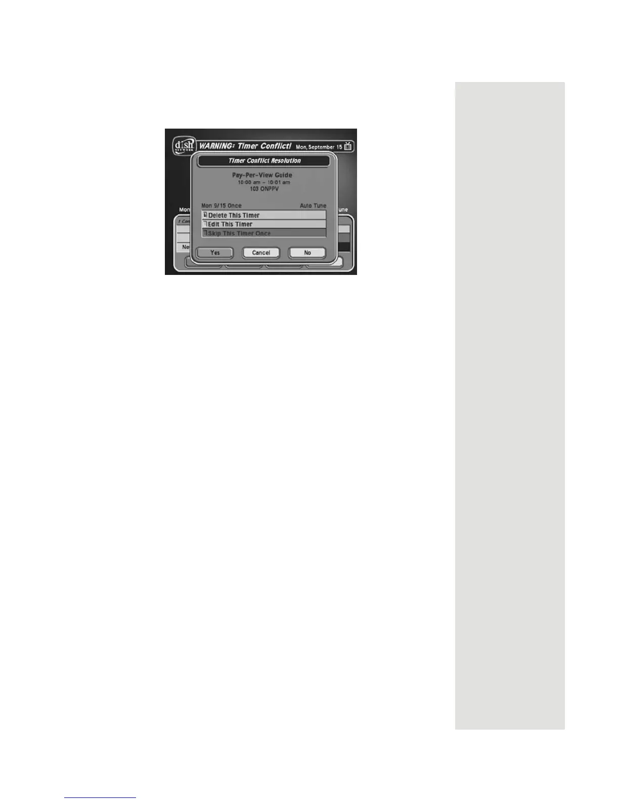 When the Timer Conflict screen displays, resolve the conflict by doing the