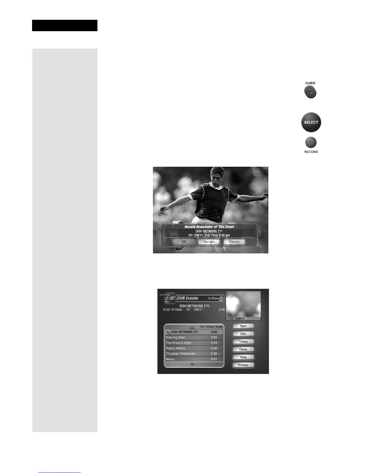 4. Press DVR on the remote control. The DVR Event screen will open. You