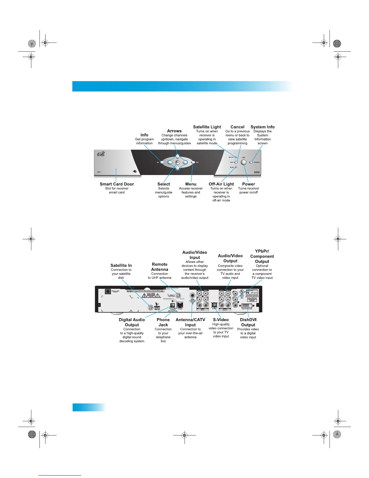 Dish Network Satellite Receiver - Satellite Receiver Front Panel; Satellite Receiver Back Panel
