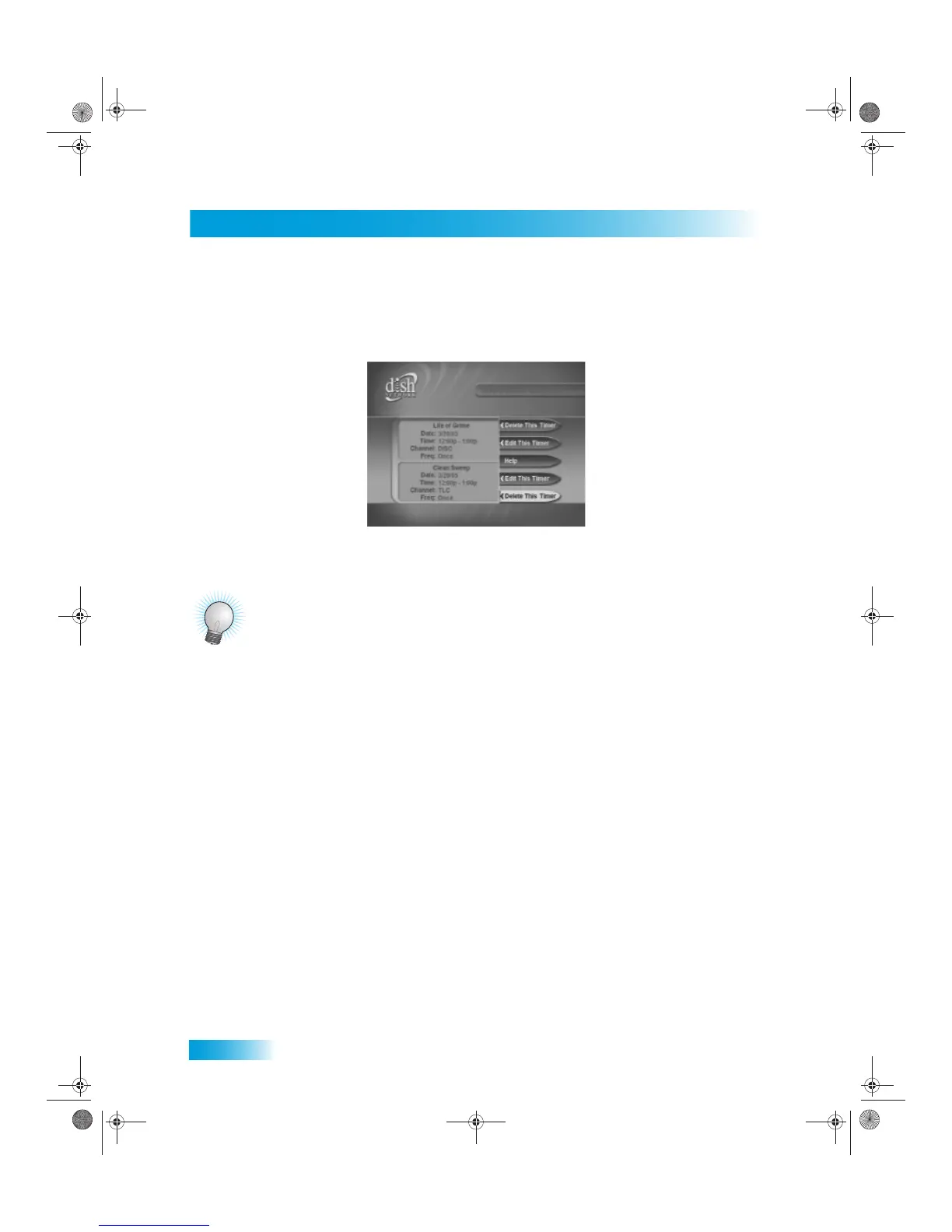 If you try to create event timers for overlapping programs, the receiver displays a screen with the