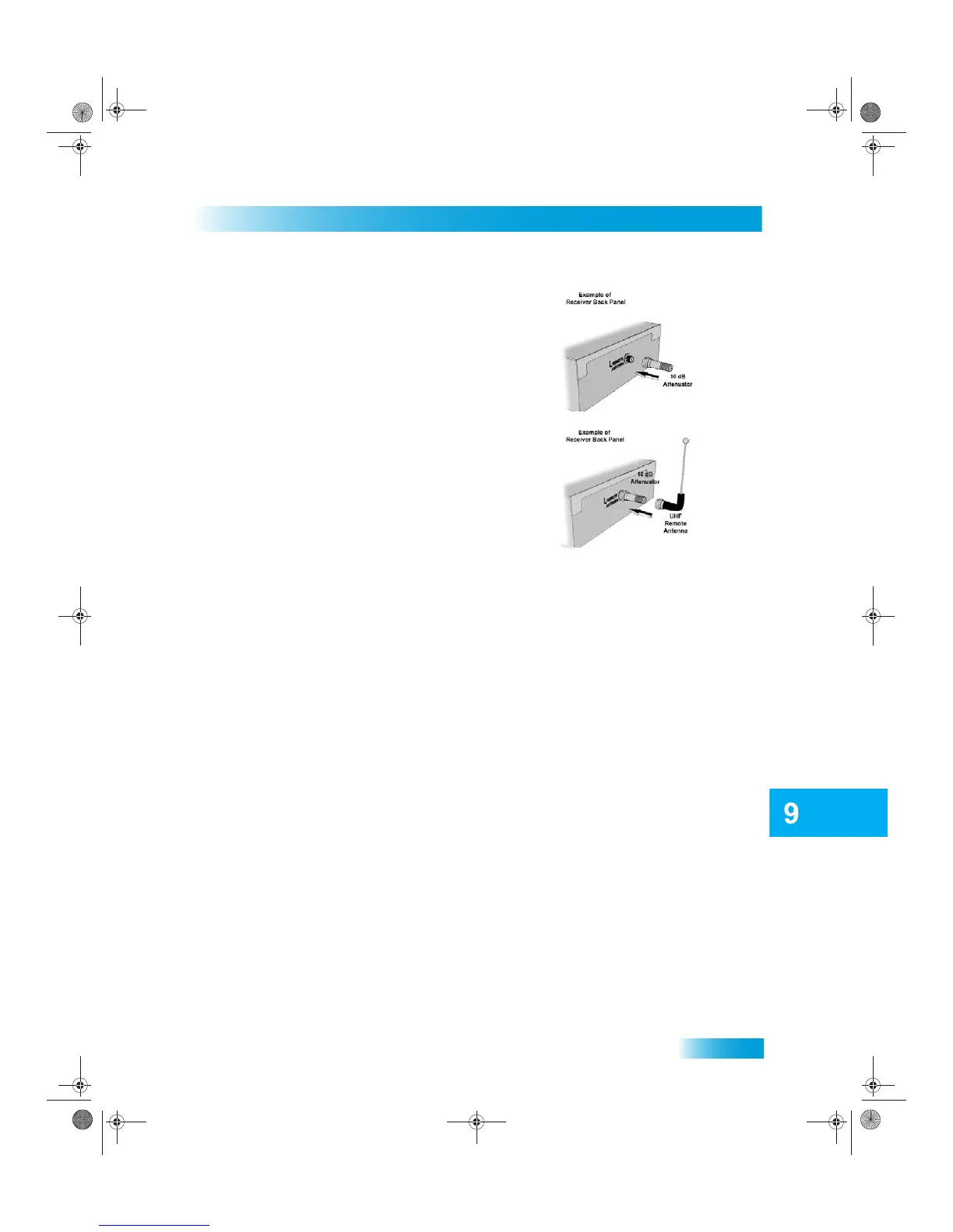 2 Attach a 10 dB attenuator to the UHF Remote