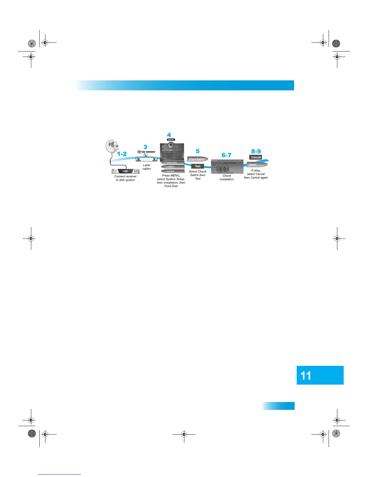 6 The receiver begins performing the Check Switch tests. When it is finished, the Installation