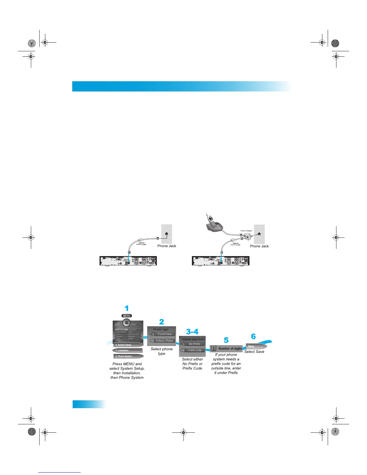 receiver’s back panel Phone Jack and the telephone wall jack to successfully connect with DISH