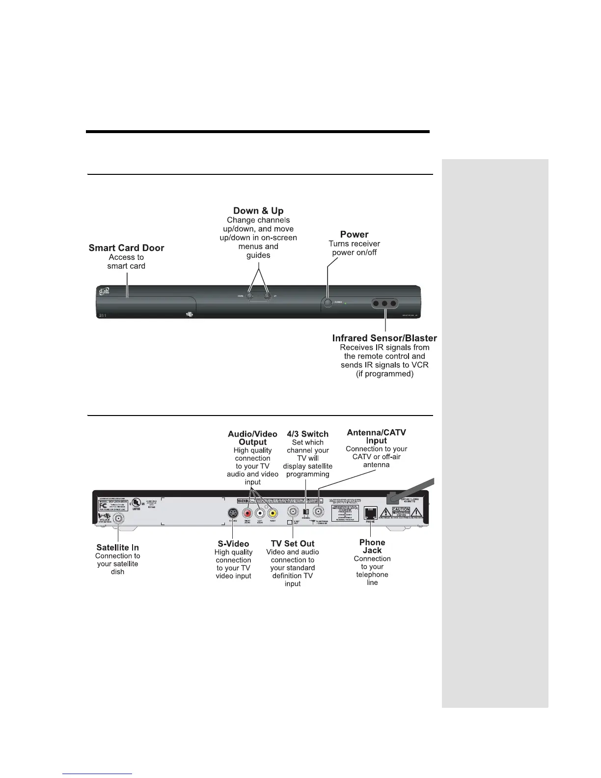 Dish Network Solo 311 - Chapter 2 - Parts of the System; Front Panel; Back Panel