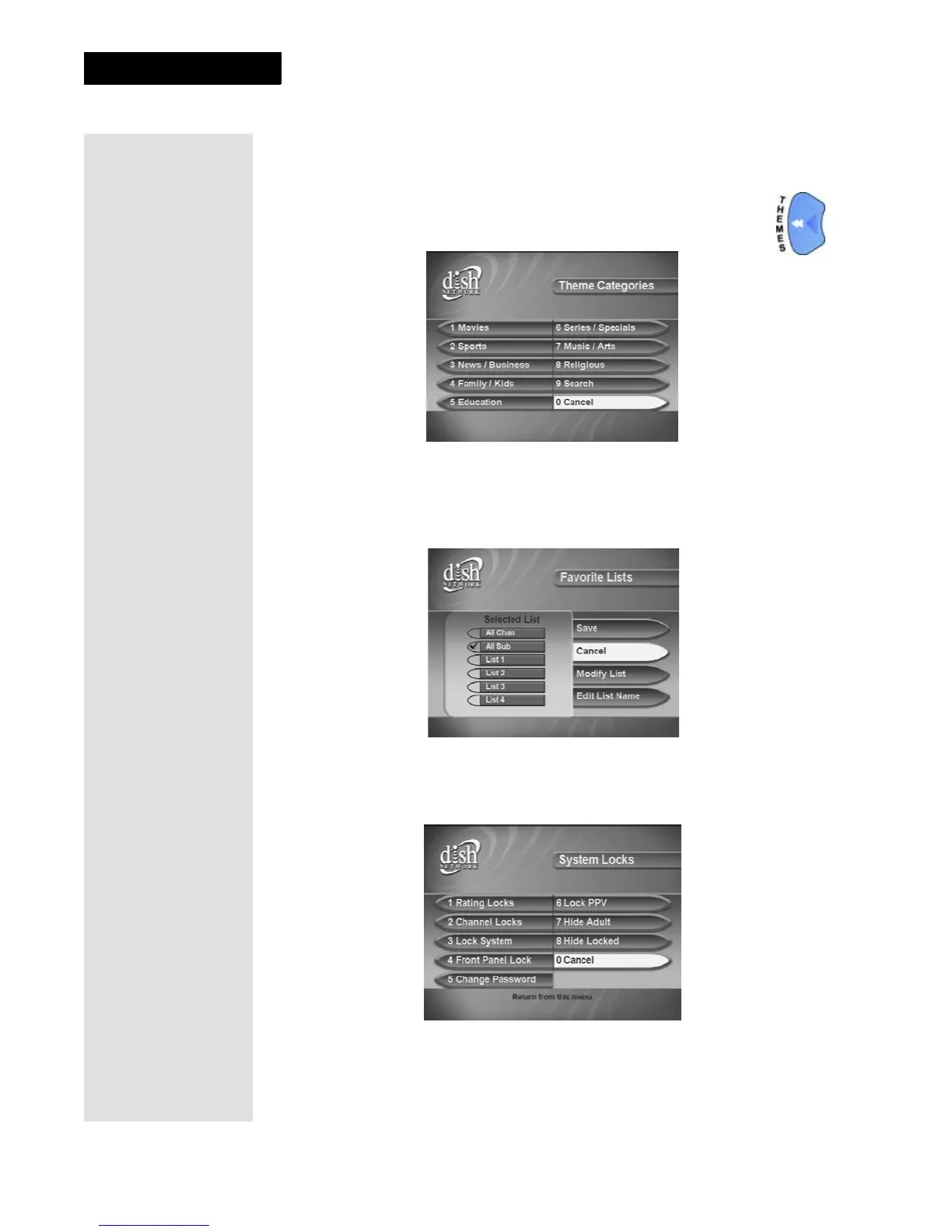 The Theme Categories menu allows you to choose programs
