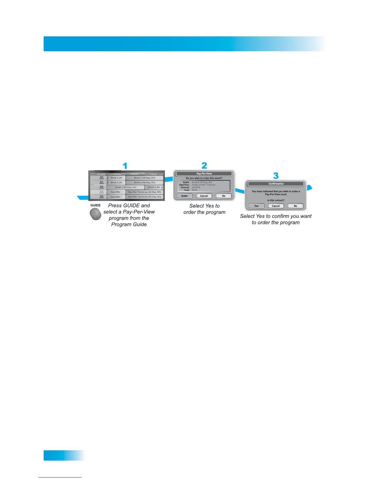 receiver to an active phone line or broadband Internet connection. After you order a Pay-