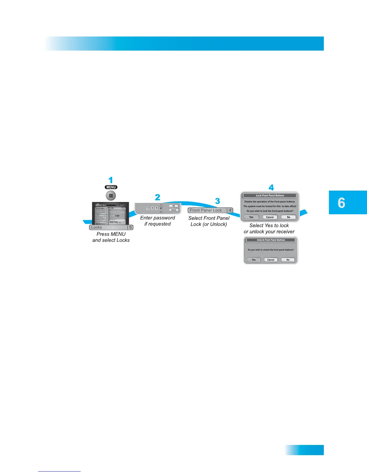 4 Select Yes. To activate the Front Panel Lock, you must lock the receiver. Make sure the