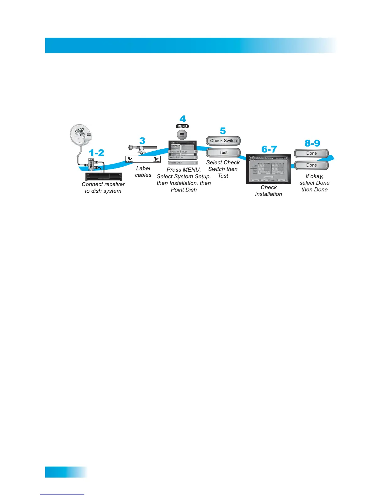 5 The receiver begins performing the Check Switch test. When it is finished, the Installation
