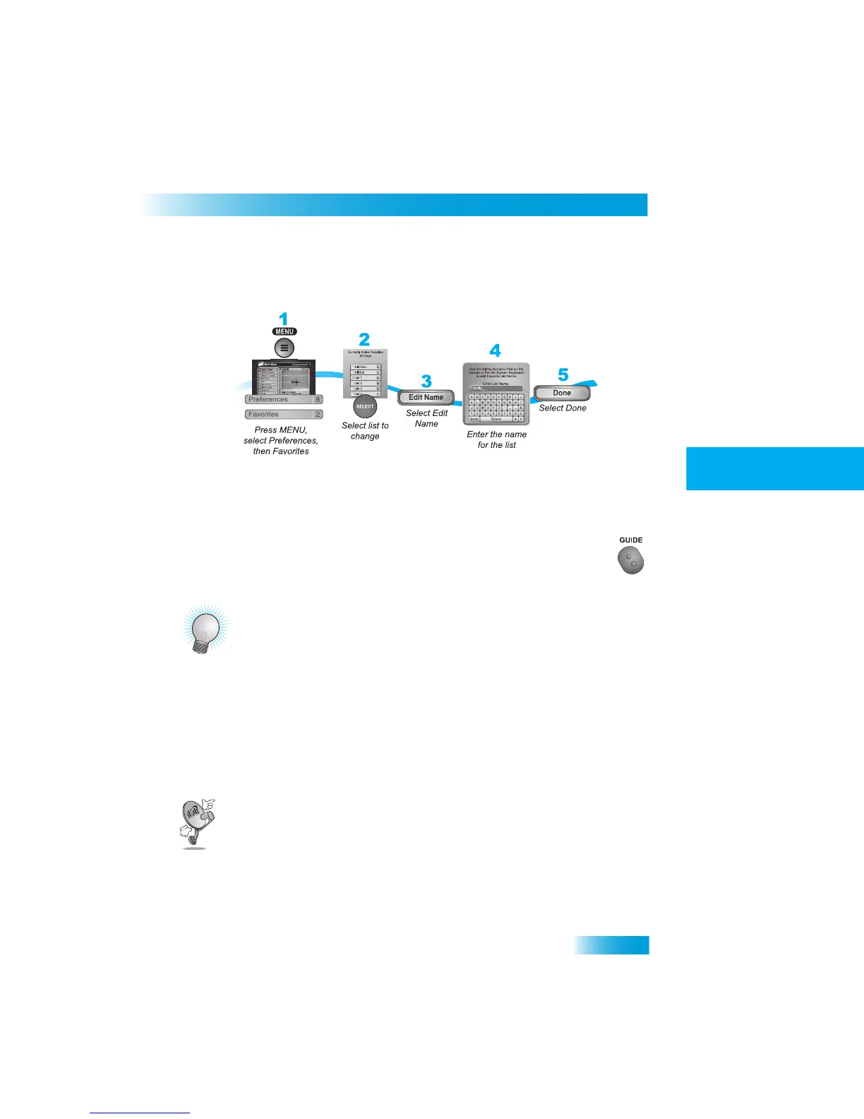 Favorites List. Press GUIDE repeatedly to scan through all the available list