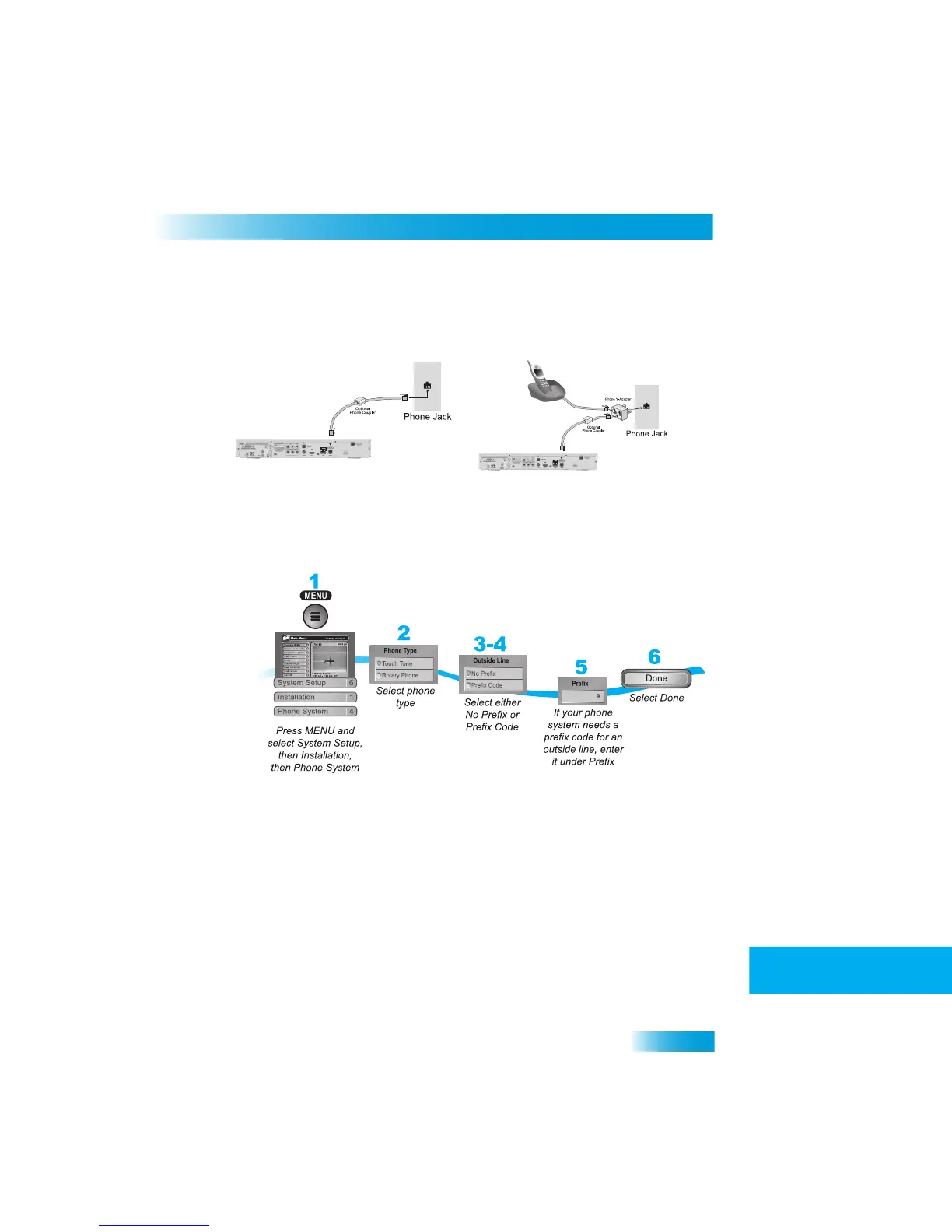You must also set up the receiver for your telephone system (touch ton