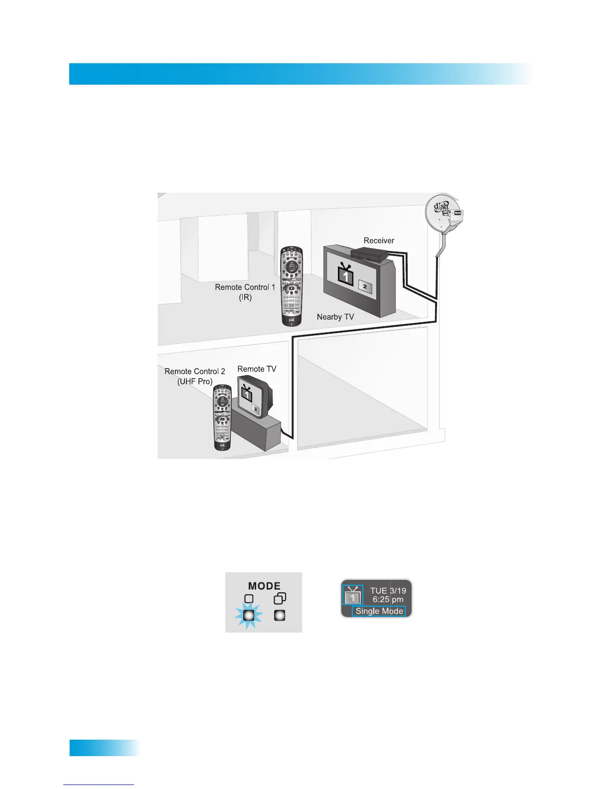 Single Mode delivers the same programming to all of the TVs connected to the satellite