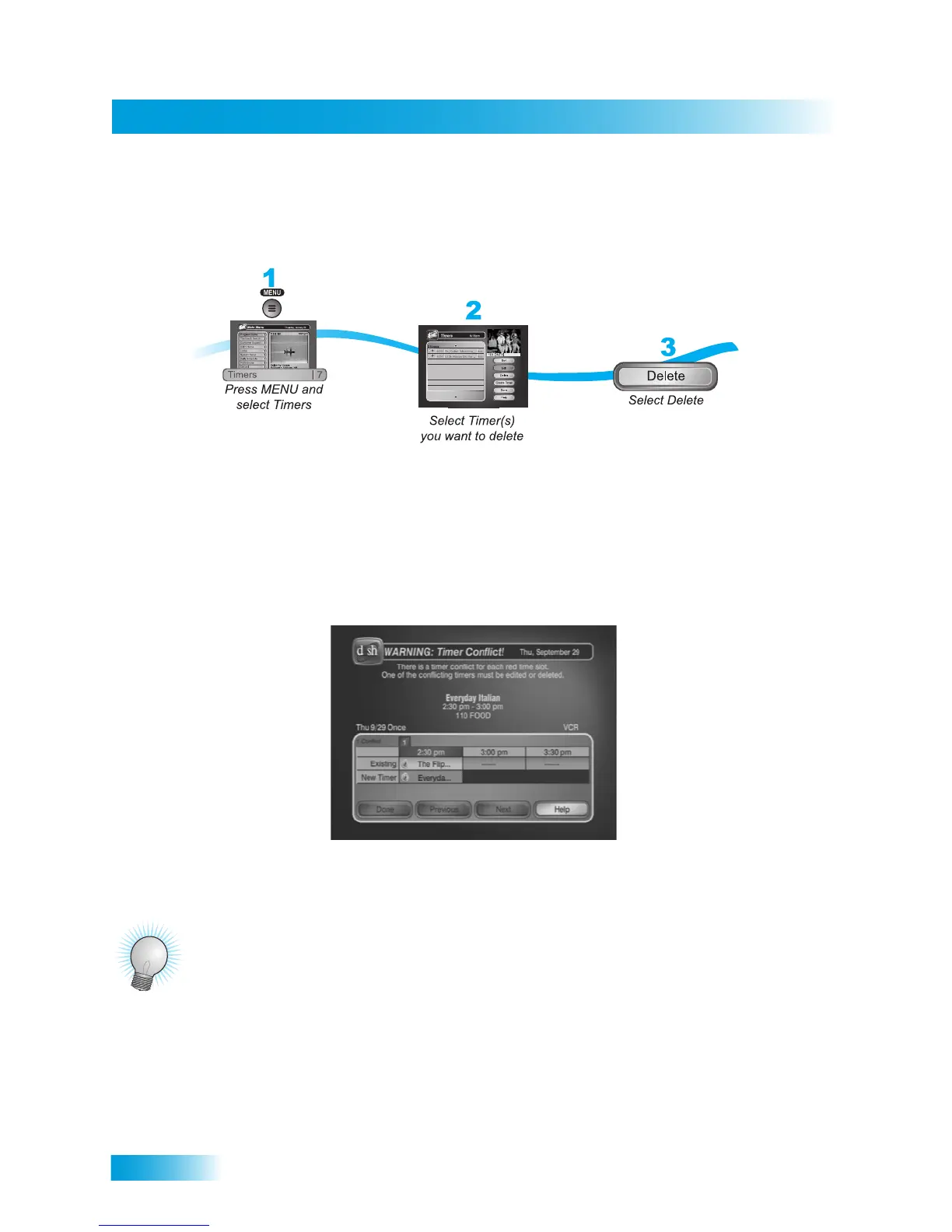 If you try to create event timers for overlapping programs, the receiver displays a screen with the