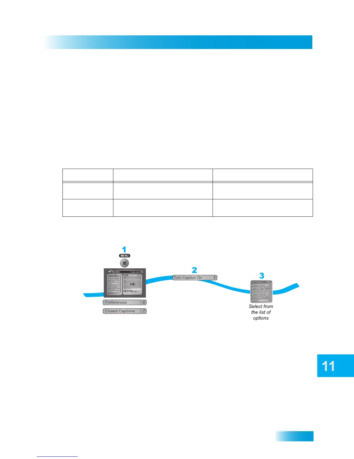 The receiver has many options for Closed Captioning (CC), which allow you to change the