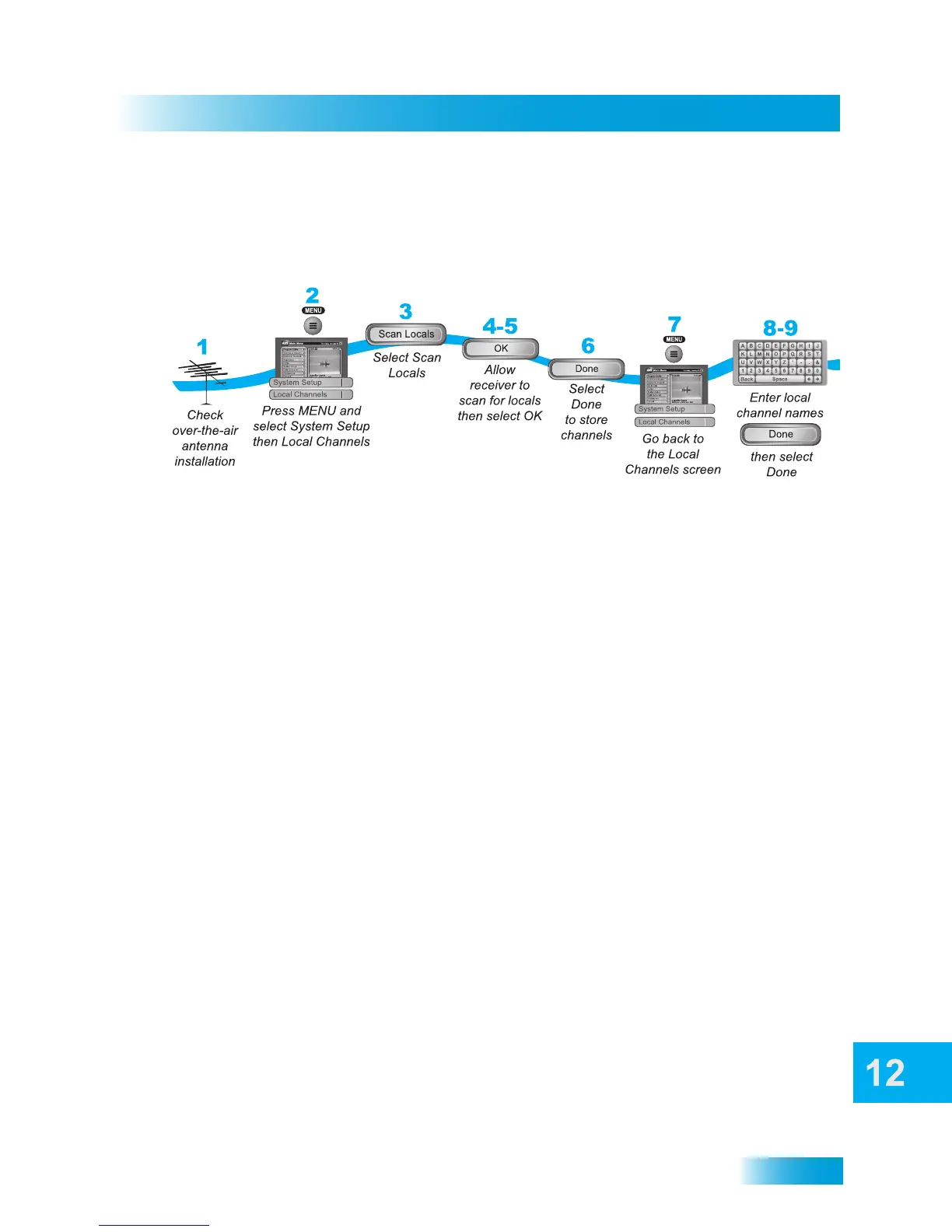 2 Press MENU, select System Setup, and then Local Channels. If this is the first time you