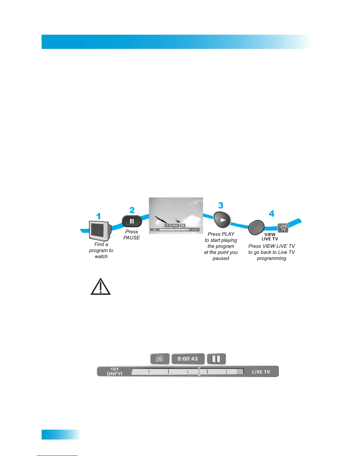 program. The pause timer shows how far you’re behind the live program. You can pause a