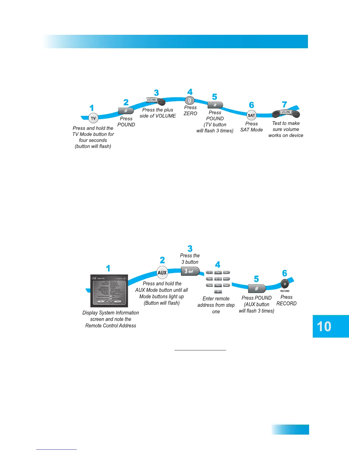 5 Press the remote control’s POUND (#) button. The AUX mode button blinks three times.