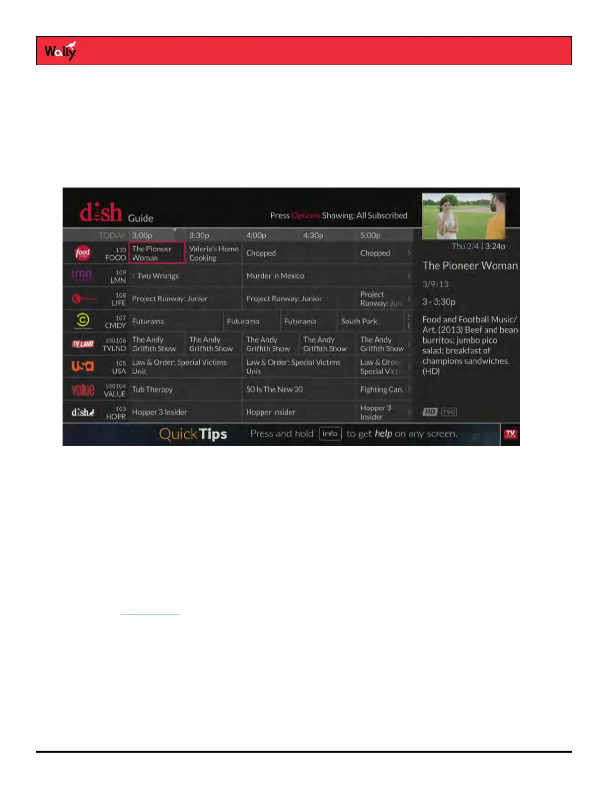 Note: The guide will display program information for the next nine days if an external hard drive is connected and