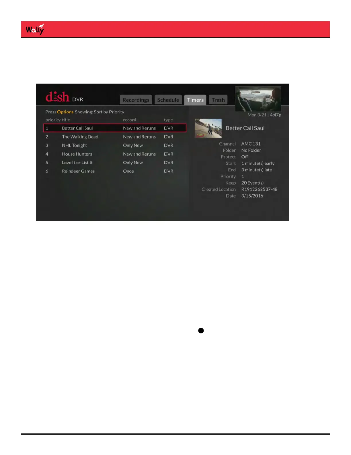 • DVR – Records a program automatically. This is the default option for every event timer when you set a