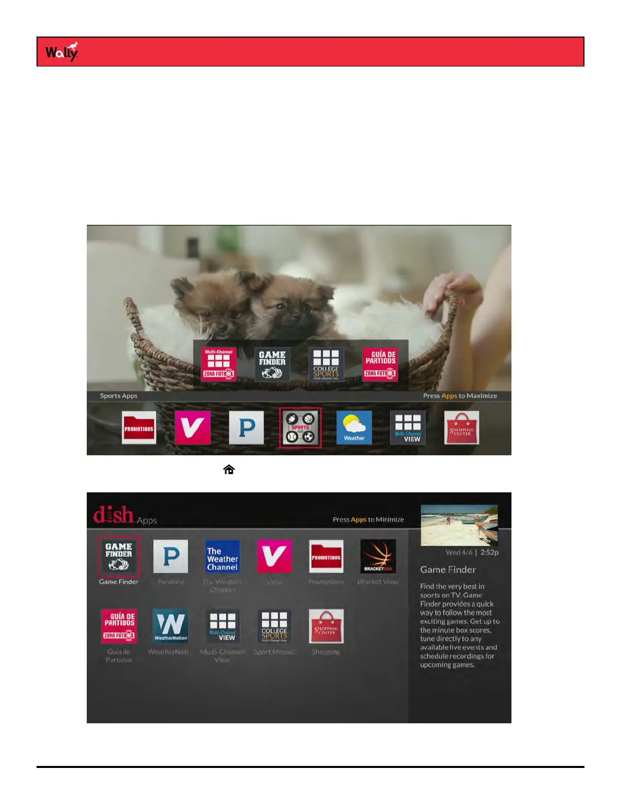 your TV. Apps appear in the categories of movies, sports, music, weather, social media, games, and more. DISH