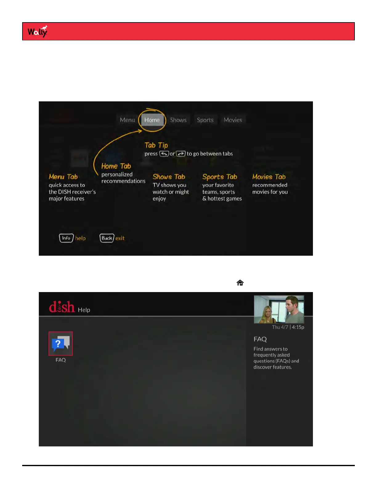 You can access helpful information about your Wally by double-pressing on the remote and selecting Help.