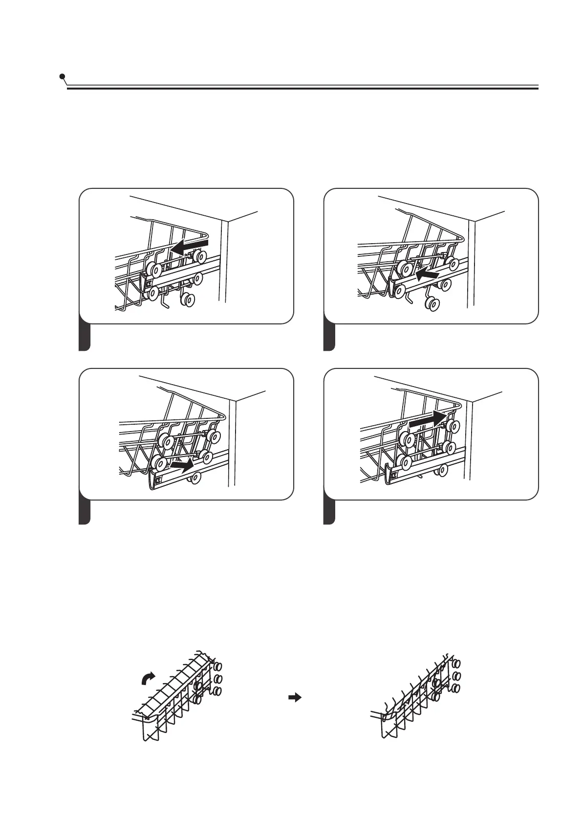 To make room for taller items in the upper basket, raise the cup rack upwards.