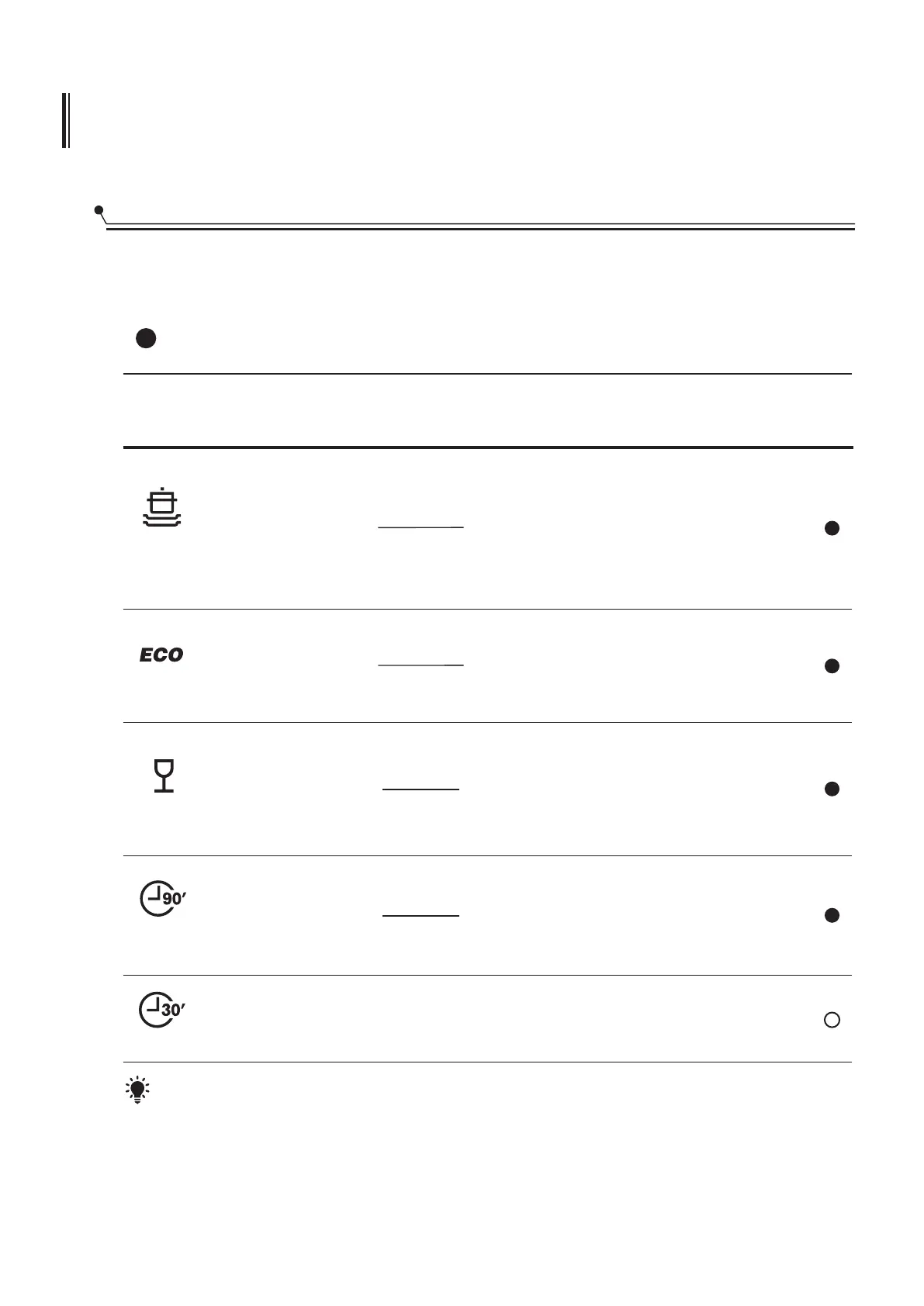 The table below shows which programs are best for the levels of food residue